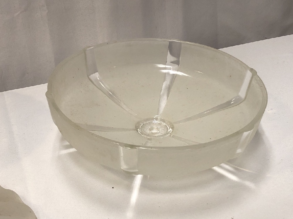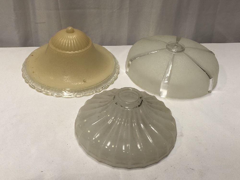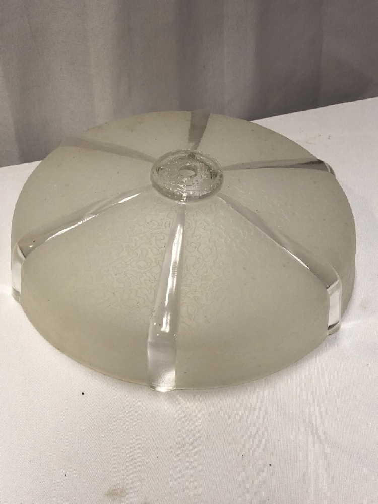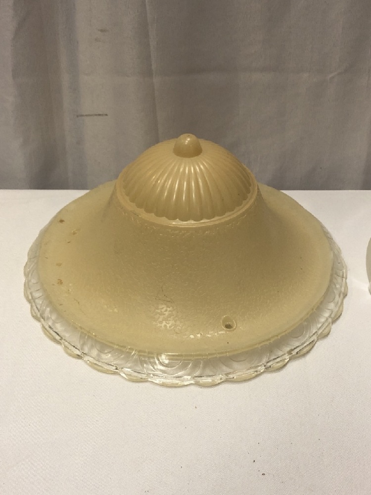 Vtg. Light Shades - Almond Frosted Art Deco 3 Hole Ceiling ~ 11 1/2” Round Opening, Glass Dome Ceiling ~ 11” round and Clam Broth Light/ Lamp Shade~ 1 1/2” Top x 9” Bottom