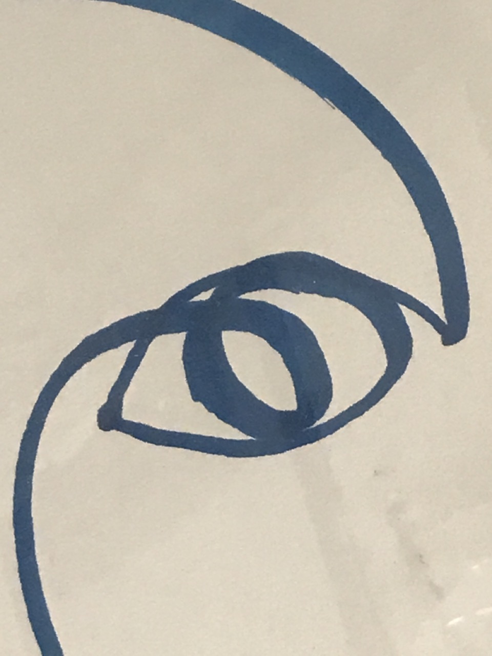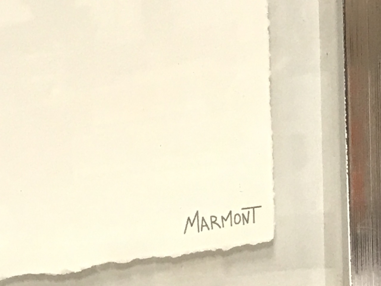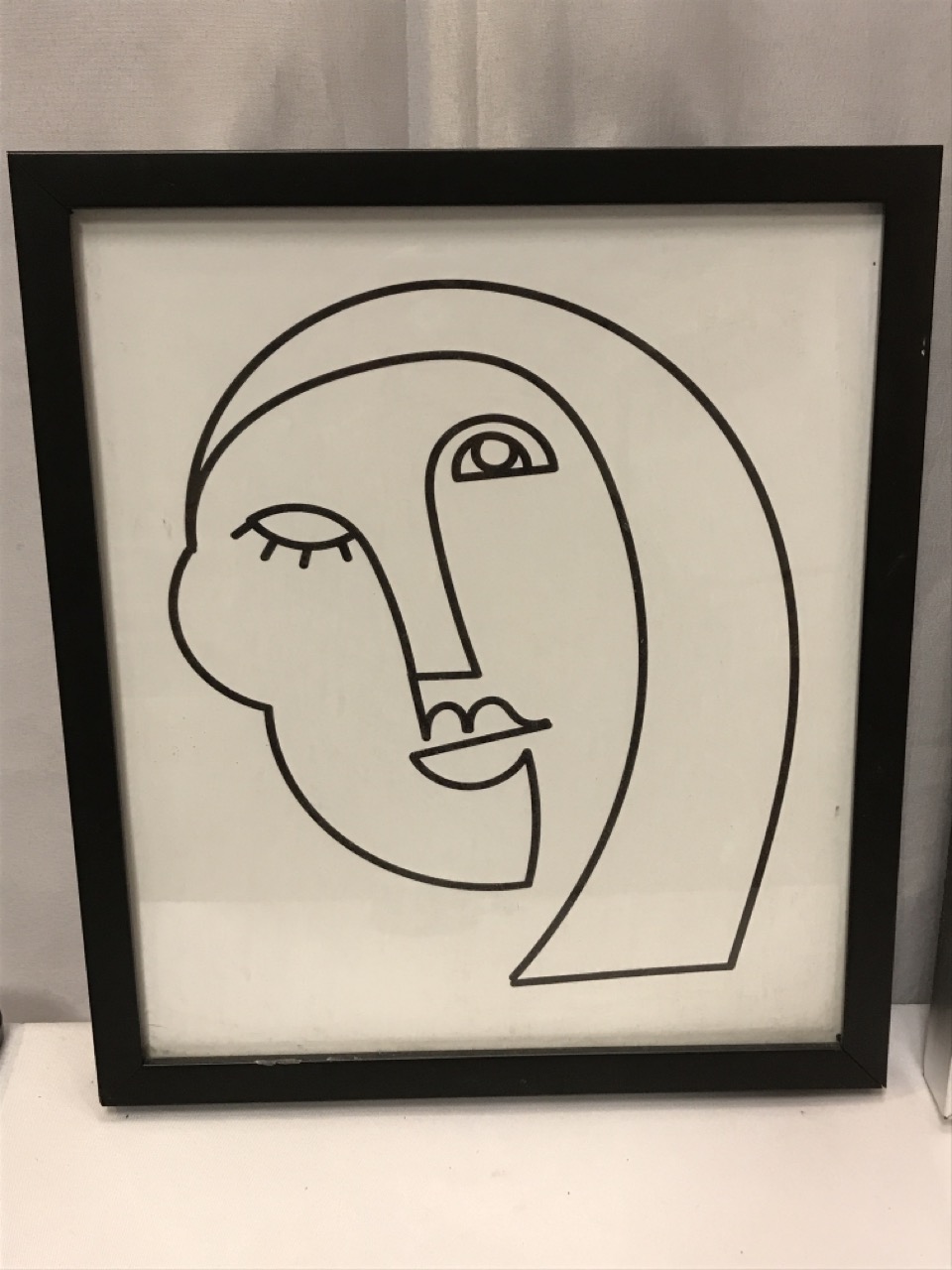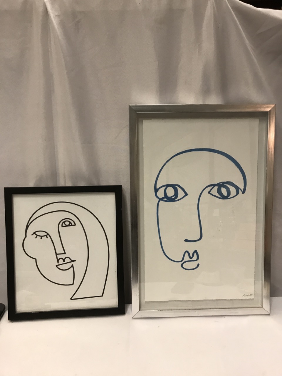 Framed Abstract Face Art - 13” x 15” Black Framed Print and 16” x 24” Silver Framed Blue Ink Signed Marmont
