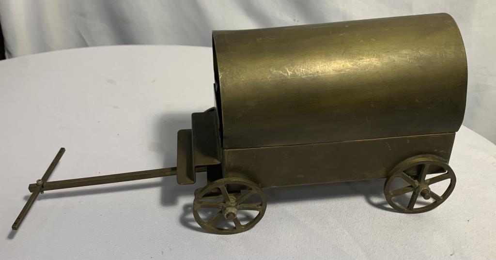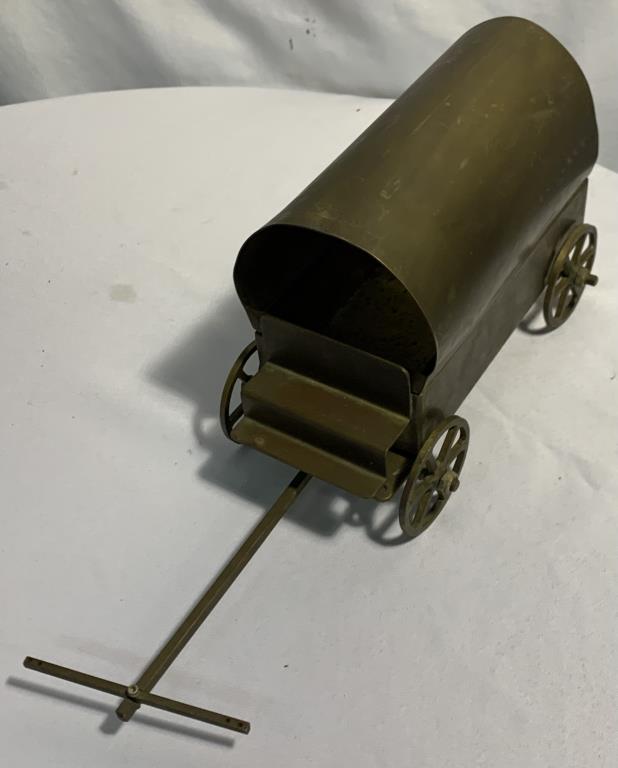 Vtg. Handmade/ Handcrafted Congesta Prarie Wagon - Solid Brass 15" (Including Handle)