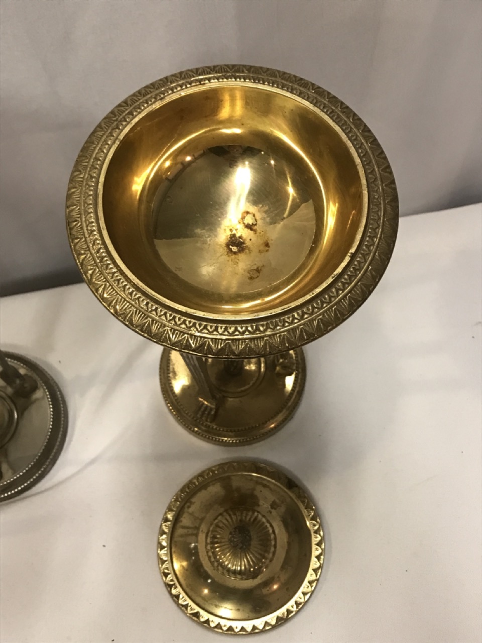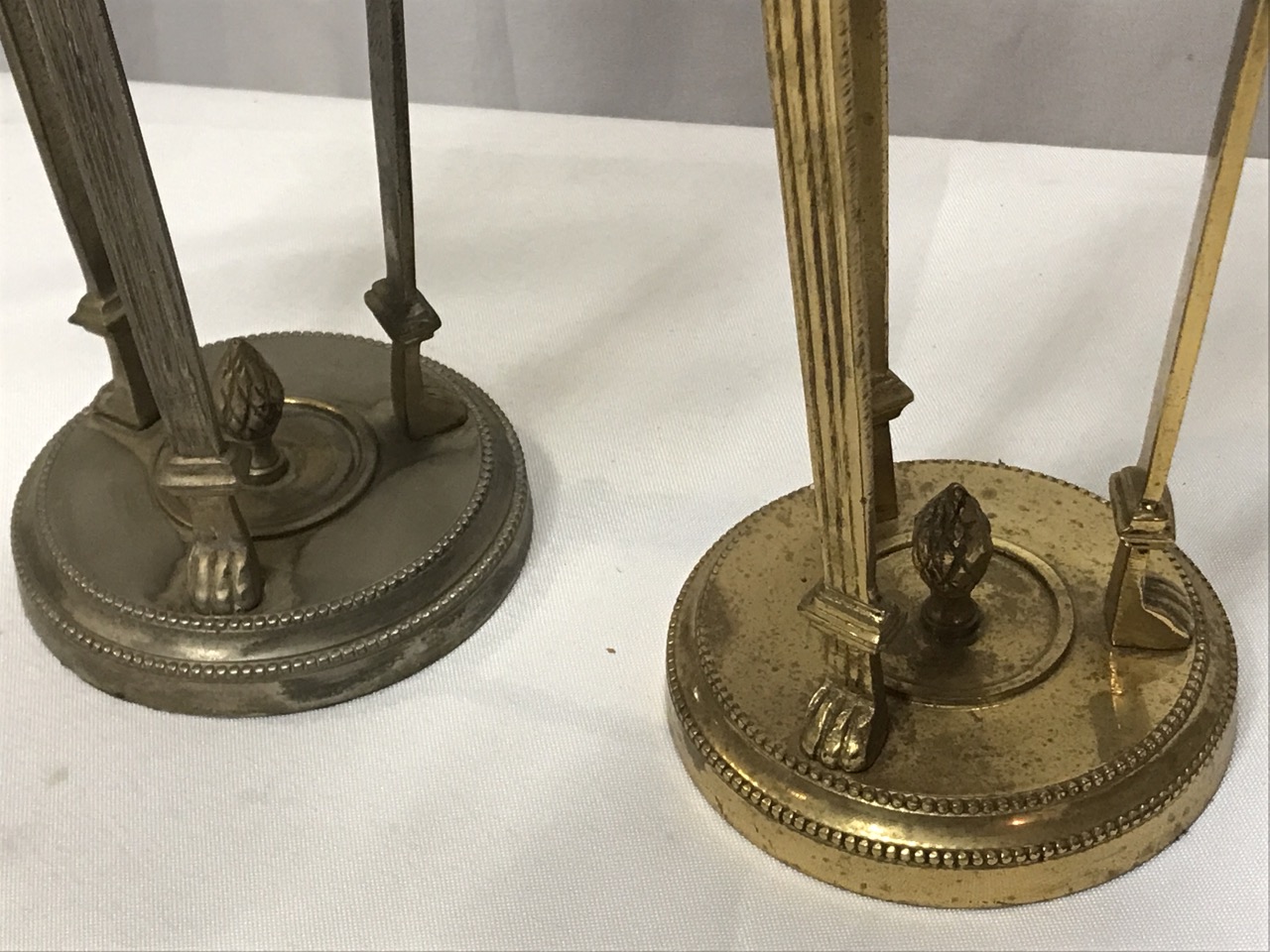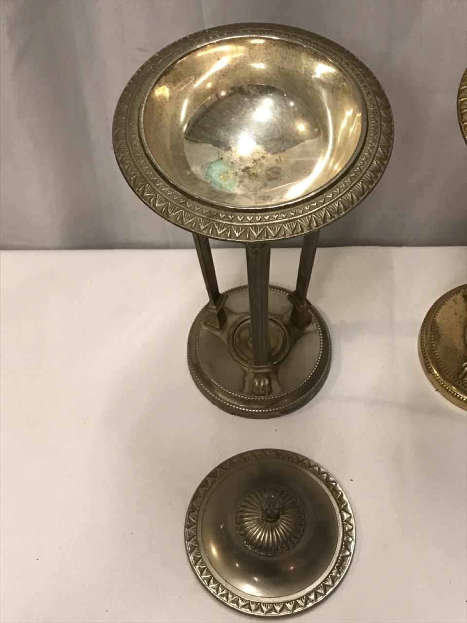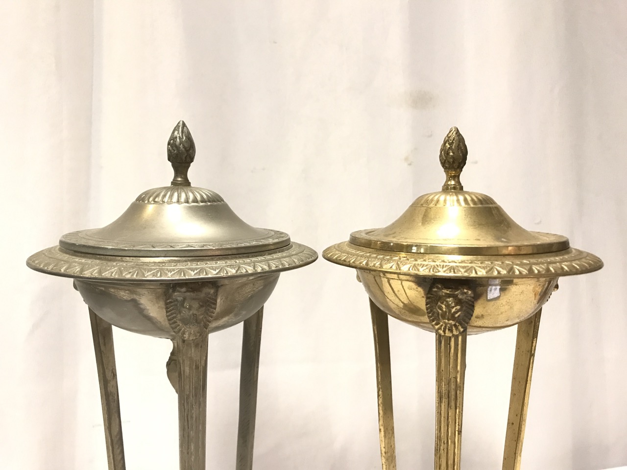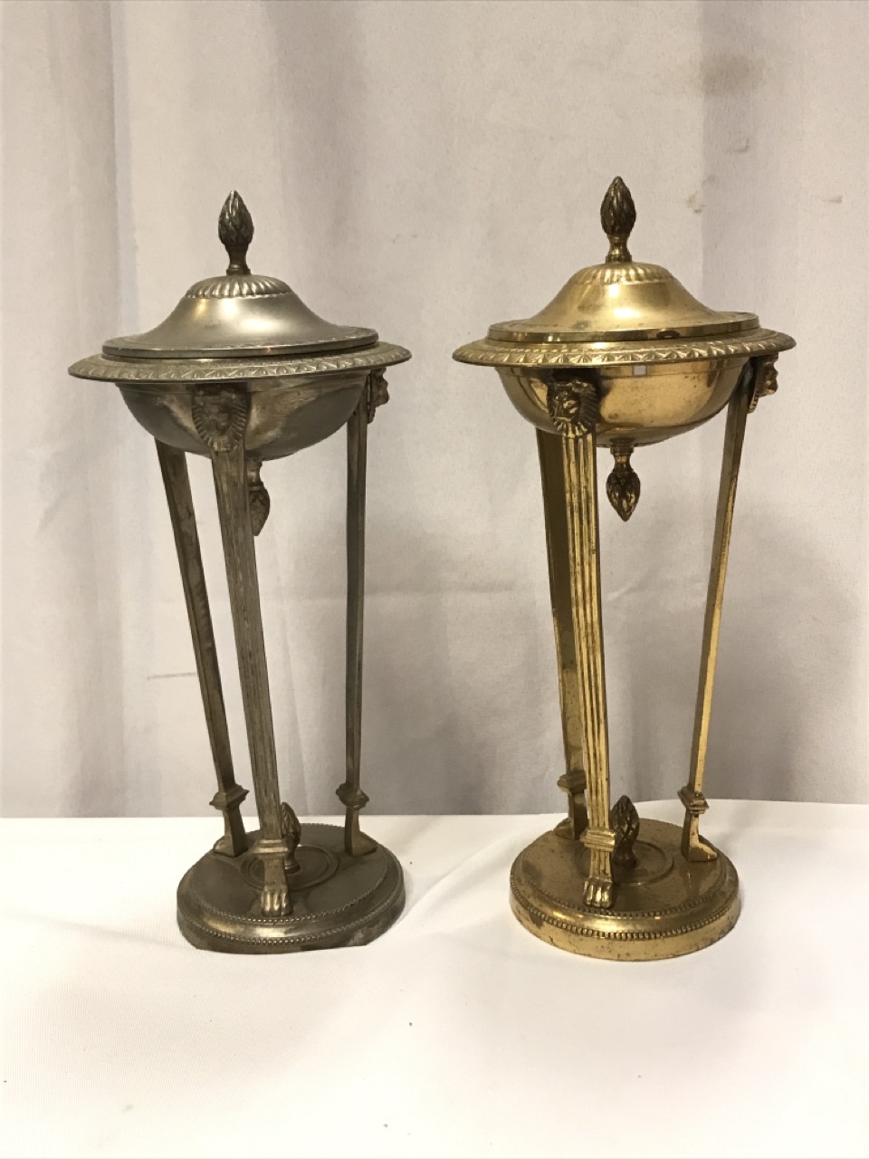 Antique Antenian Egyptian Revival Incense Burners- Brass - Silver and Gold Tone - Lion Head/ Claw Feet ~ 12 1/2” Tall