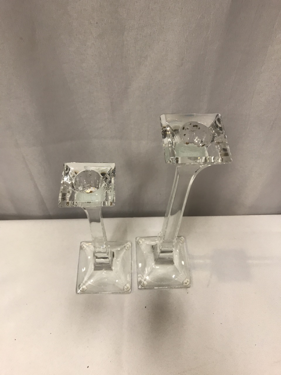 Tiffany And Co. Crystal Candlesticks - one 8” Tall/ One 10” Tall