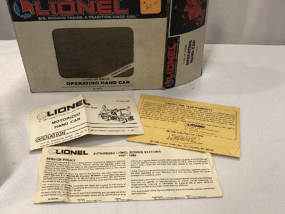 Vtg. Lionel 0 and 027 Gauge Operating Hand Car - in box