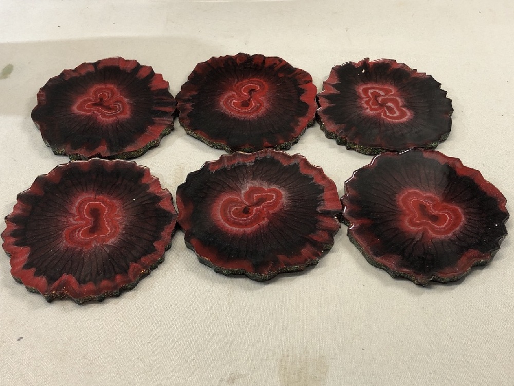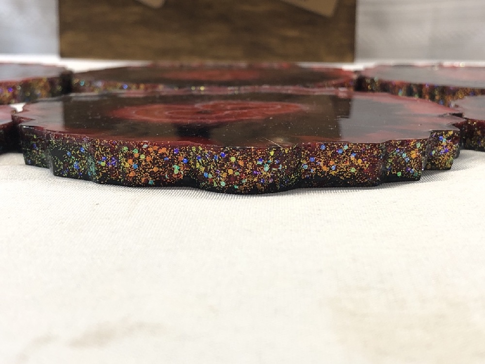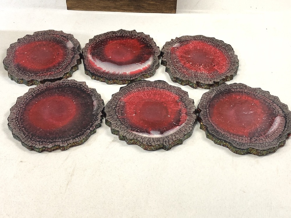 6 Epoxy Resin Art Coasters (5” Round) Staten Island Moose Lodge 135 John Popick Past Gavener Tags and Wooden Box ( 8” x 6”)