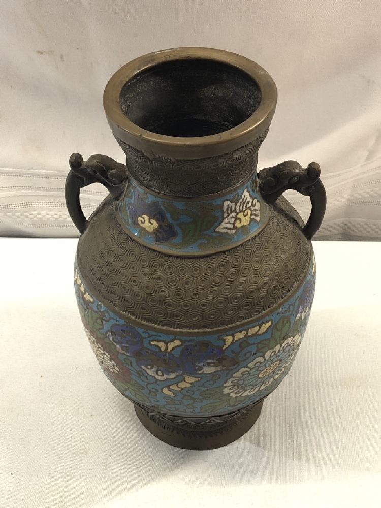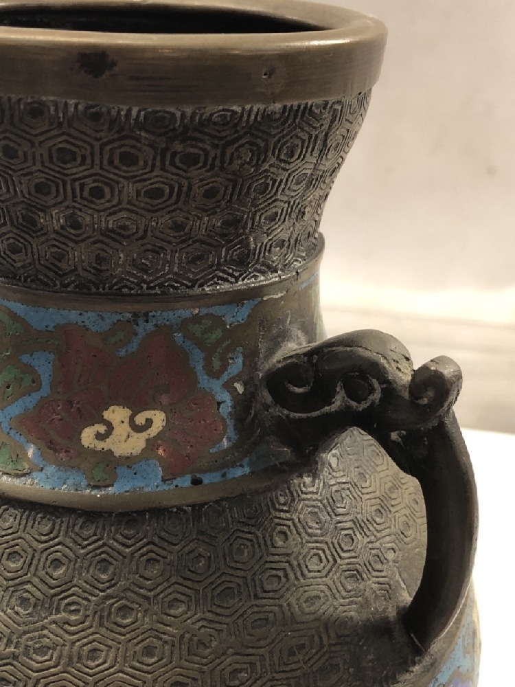 Vtg. Japanese Champleve Cloisonne Bronze Vase~ 9 3/4” Tall x 6” Wide
