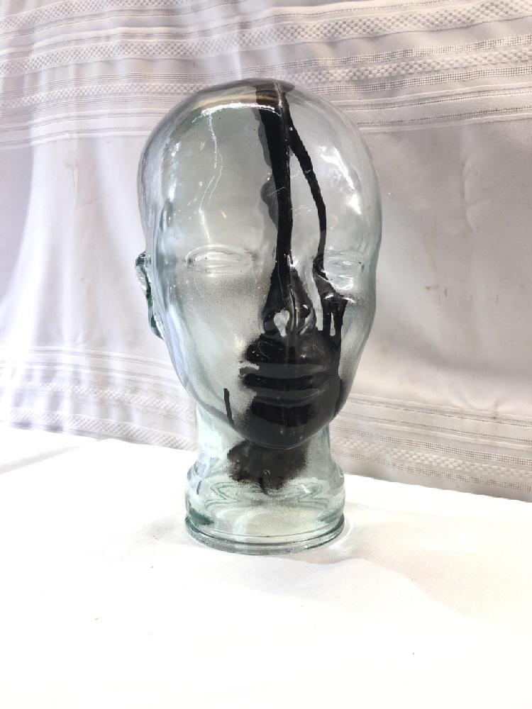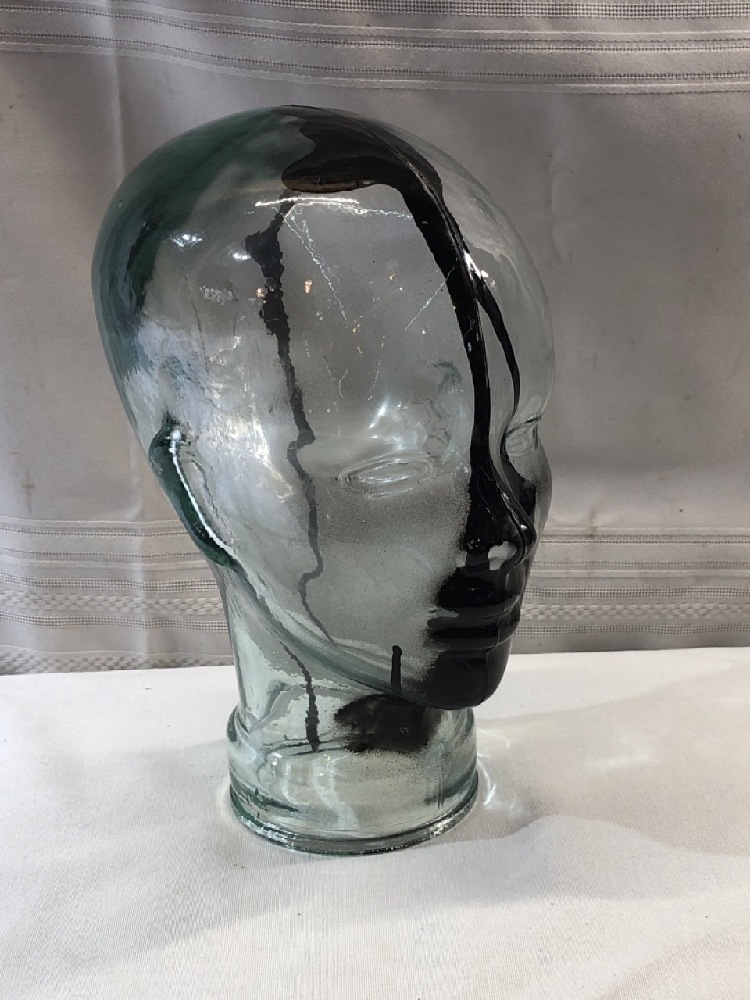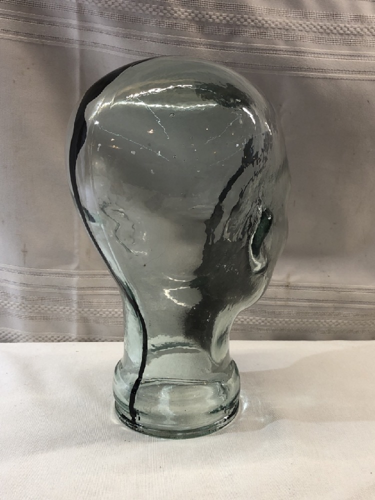 Vtg. Green Glass Mannequin Head~ 12” Tall
