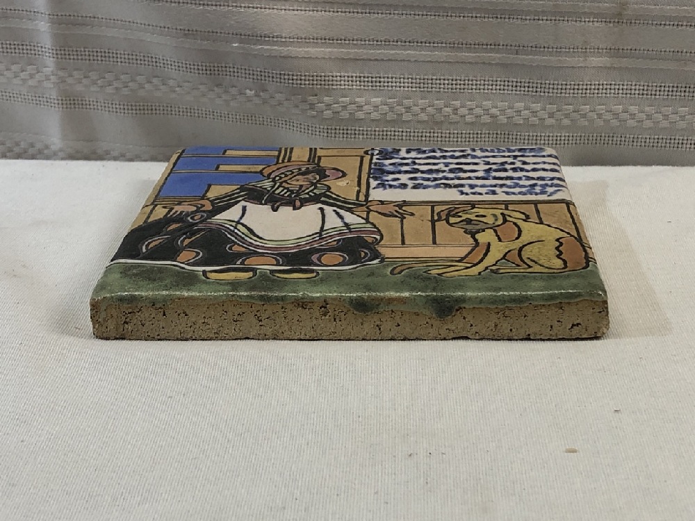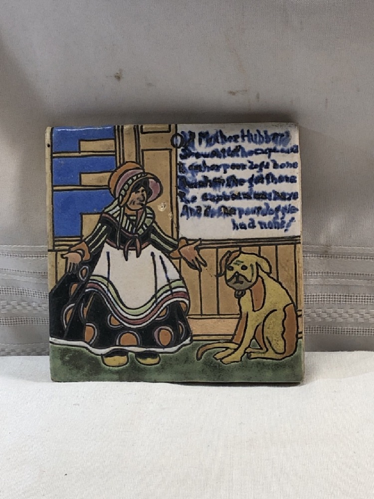 1900’s Nursery Rhyme Tile - Old Mother Hubbard - Tile Signed “Empire” ~ 6 1/4” Tile