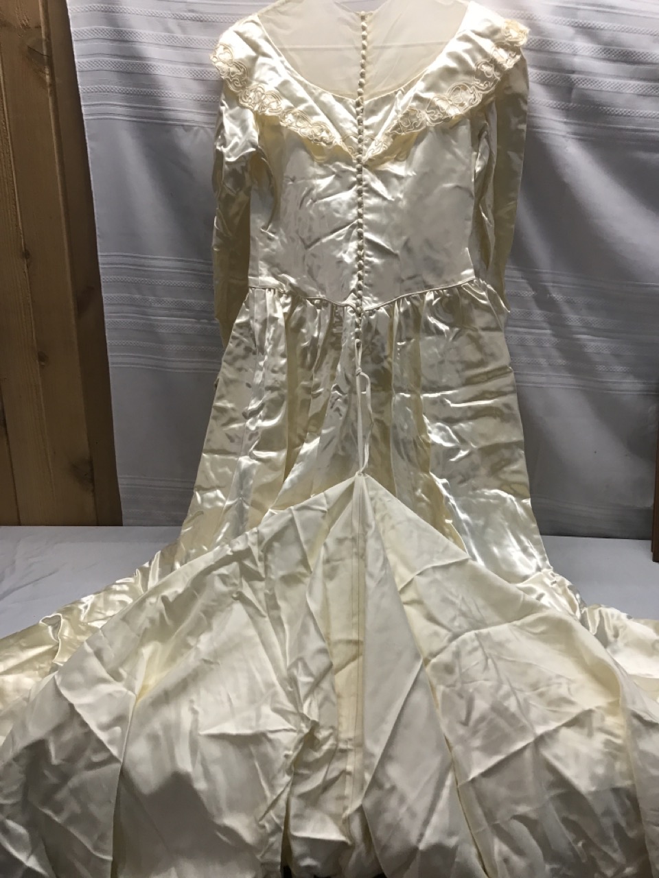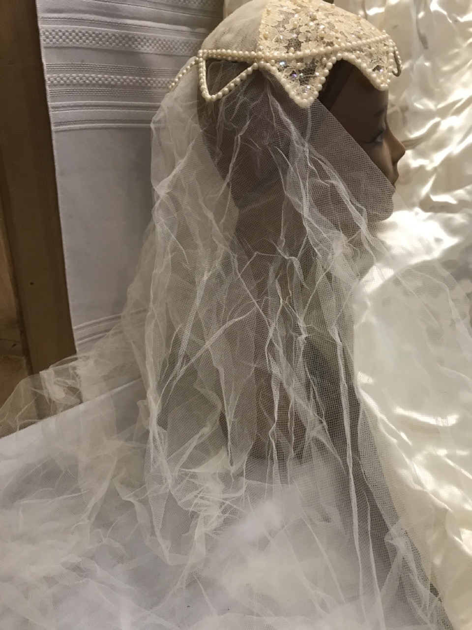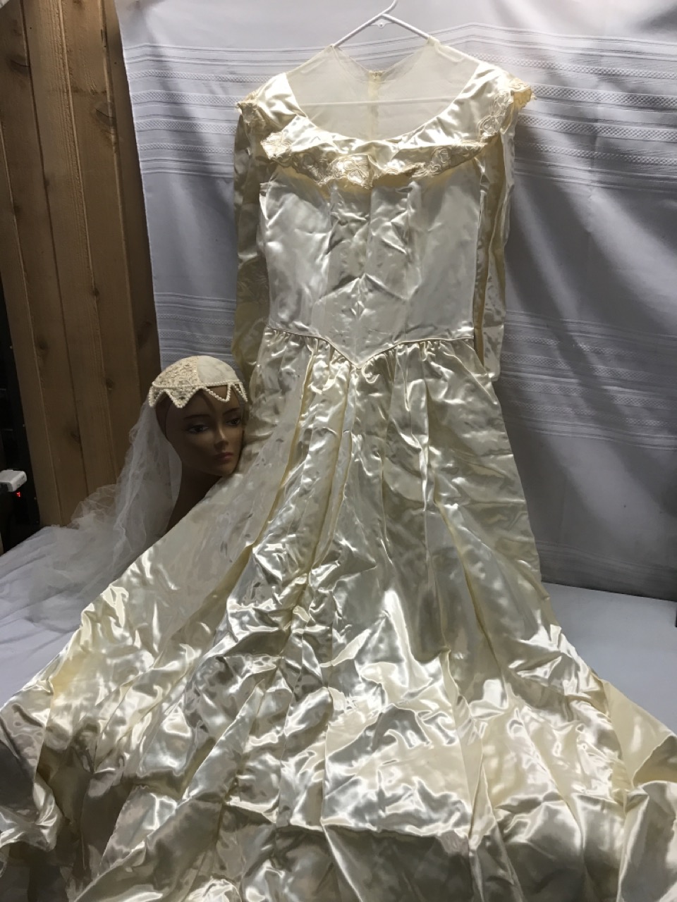 Vintage Satin Maurer Original Wedding Dress and Miss Lillian for Vogue Bridal Gemmed Veil