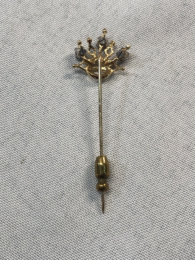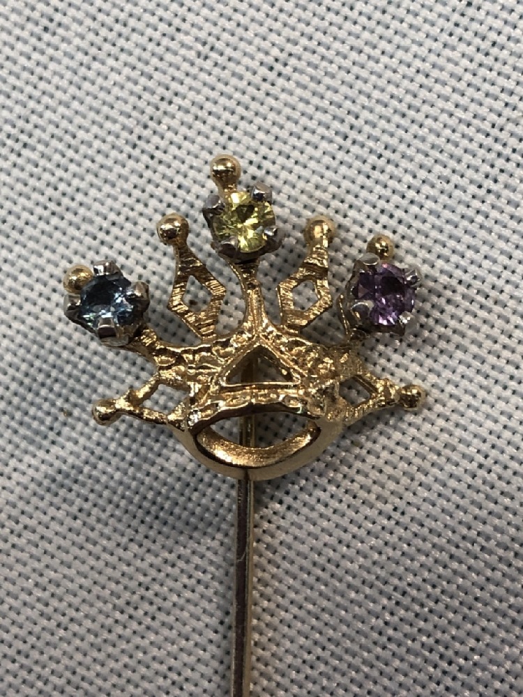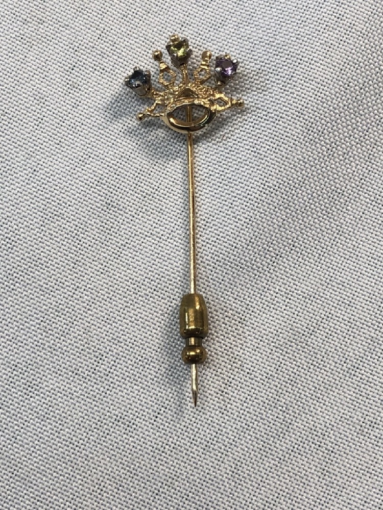 Vtg. 10 KT Gold Eskimo Stick Pin ~ Crown ~ 2 1/4” ~ Amethyst, Peridot and Aqua Marine - 2.8 Grams Total Weight