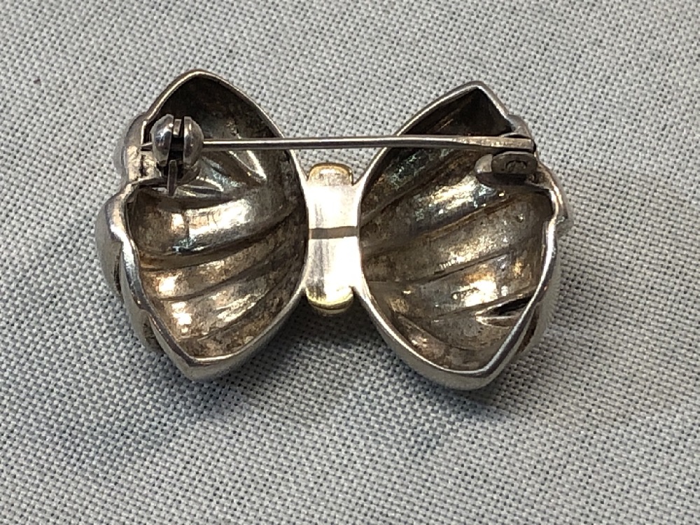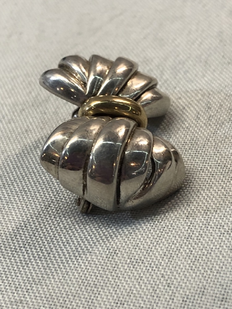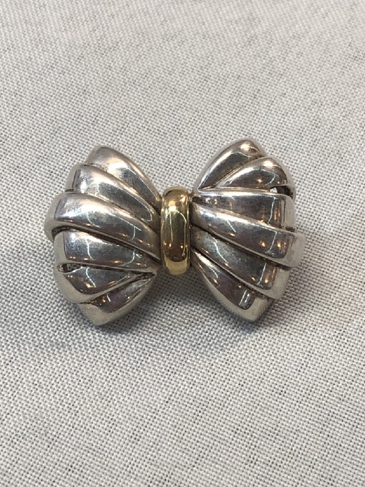 Two-Toned Bow Brooch “750” 18kt Gold & Sterling Italy - 1 1/2” - 15.9 grams