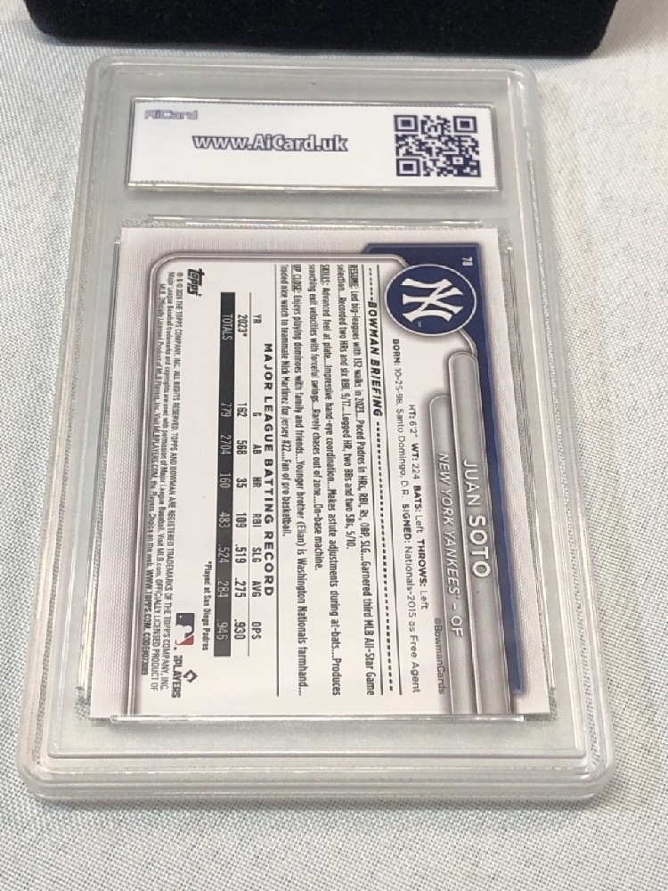 Graded 2024 Juan Soto AiCard - Gem MT 10- Featuring Juan Soto in Yankees Uniform