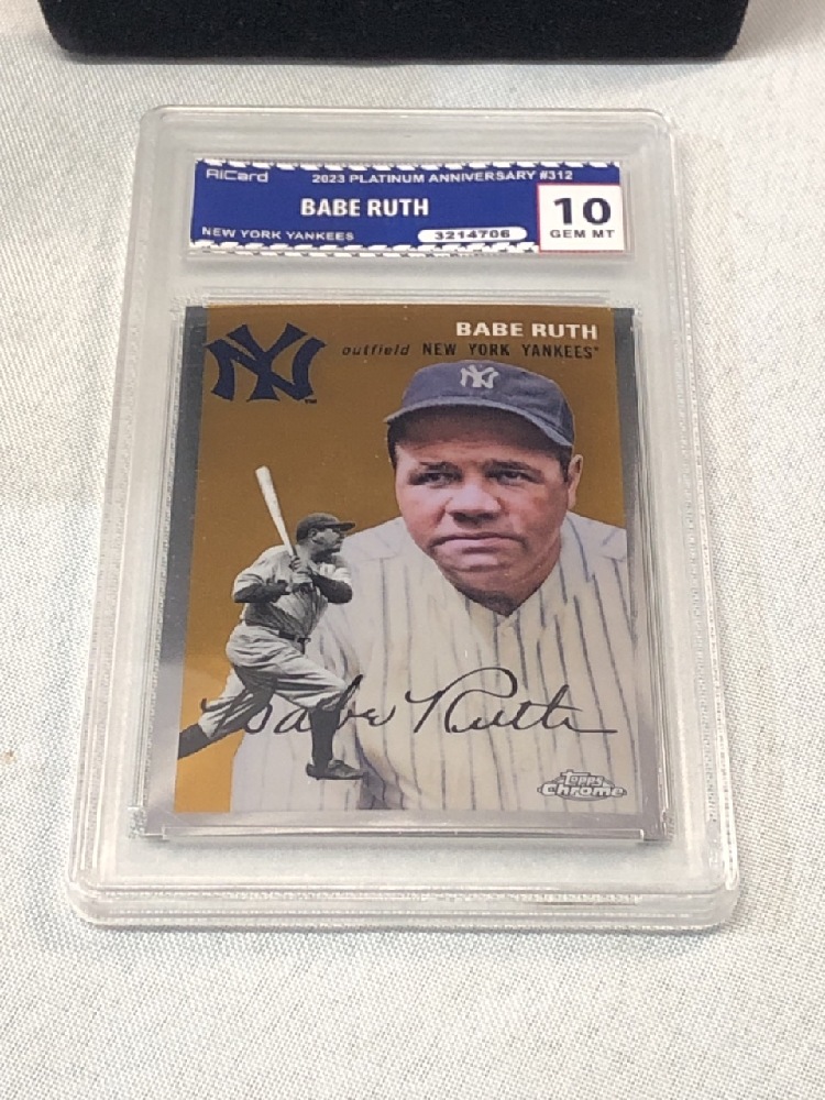 Graded Babe Ruth 2023 Platinum Anniversary Baseball Card ~ #312 Topps chrome Platinum Series - Gem Mint 10 - 3214706