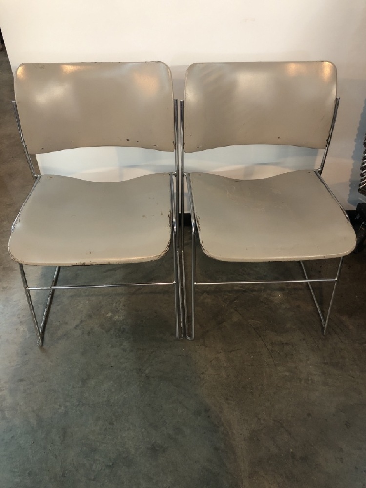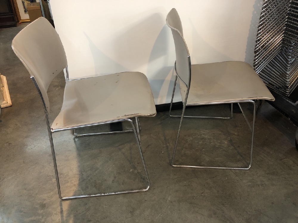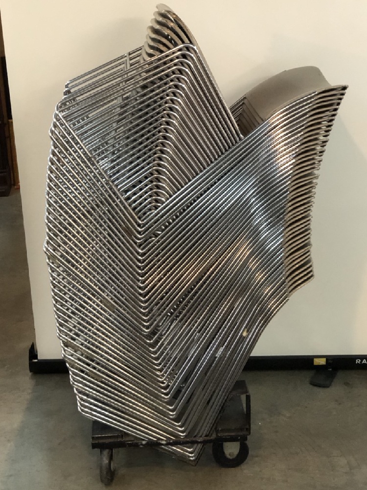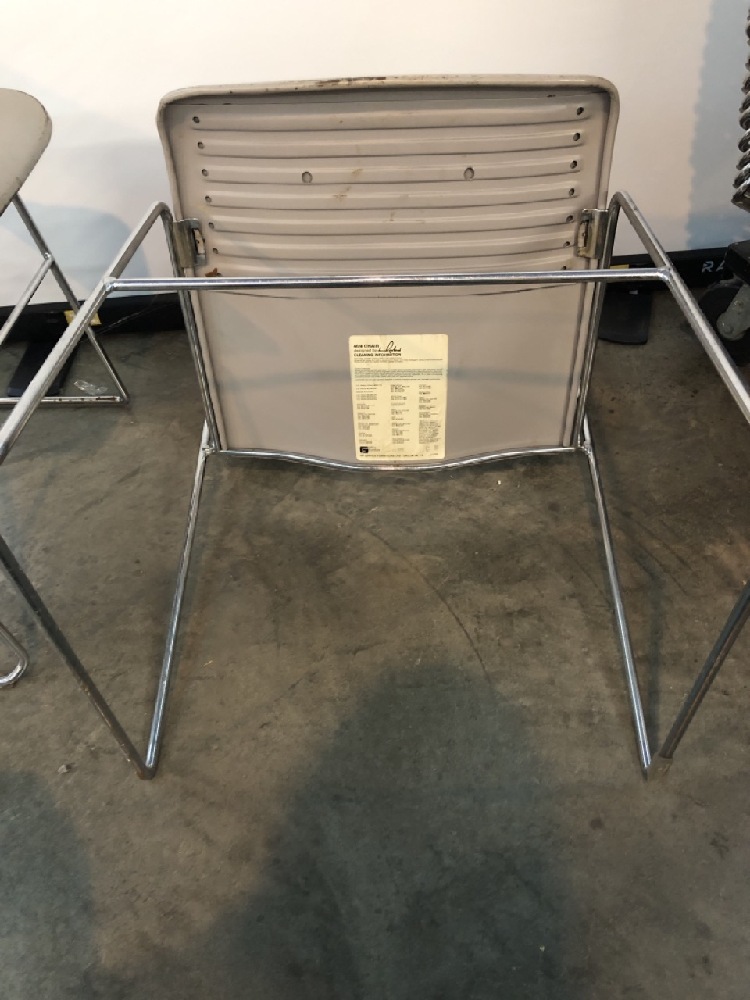 40 MCM 40/4 Stackable Chairs by David Rowland With Cart ~ Steel Chair ~ Grey Color~ 30” Tall (top of chair) x 20 1/2” Wide x 18” Deep X 18” Chair Height ~