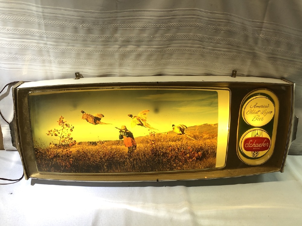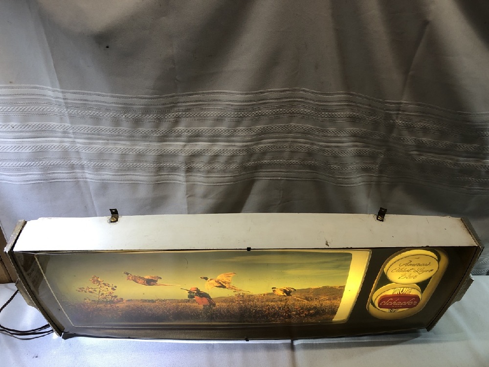 Vtg. Schaefer Beer Lighted Bar Sign featuring Pheasant Hunting - Schaefer Breweries - 36 1/2” x 13 1/4 ~ Works