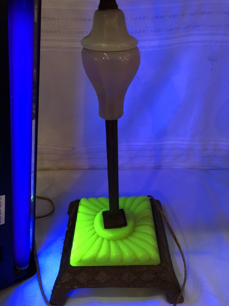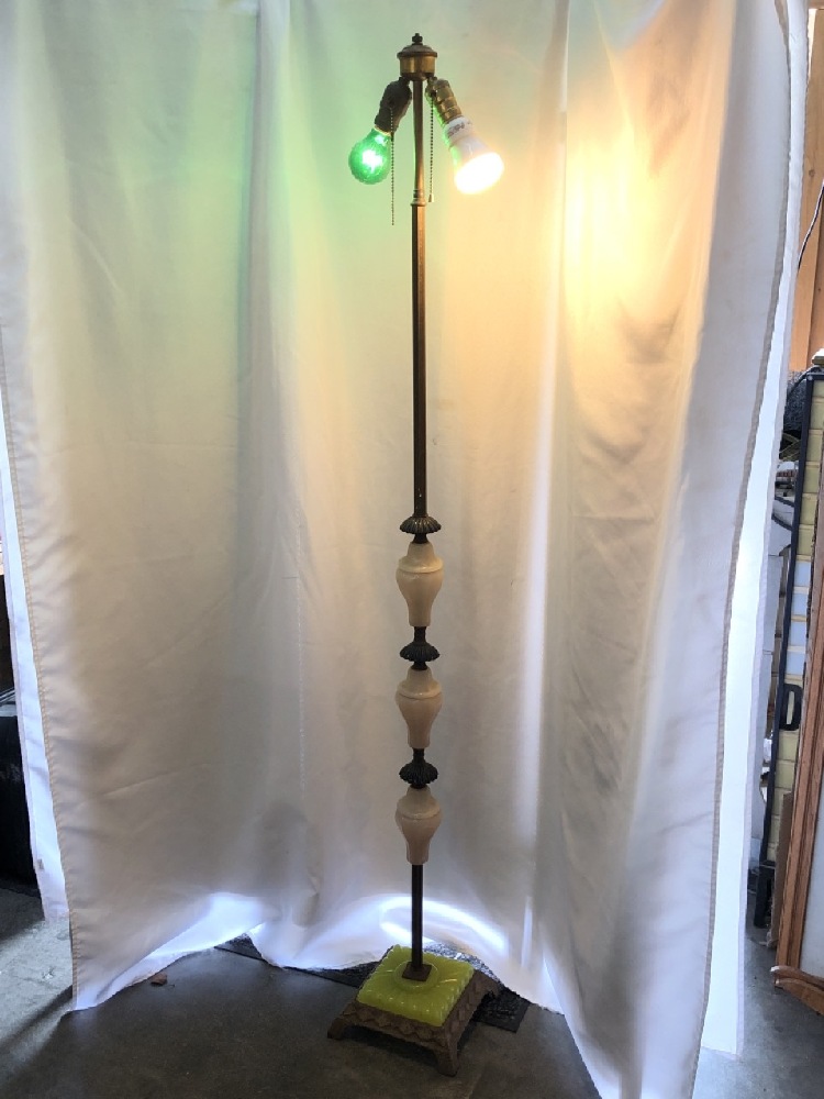 Vtg. Brass & Green and Pink Jadeite Floor Lamp ~ 60” Tall - Works