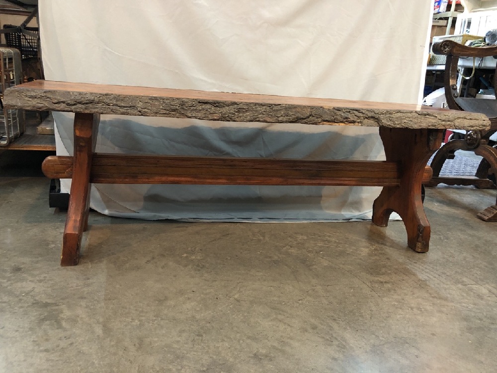 Vtg. Live Edge Handmade Bench - 55” Long x 15 1/2” Wide x 19 1/2” Tall