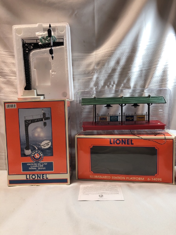 Lionel Illuminated Station Platform 6-14095 and Mainline Die Cast Cantilever Signal Bridge 6-22931- in original boxes