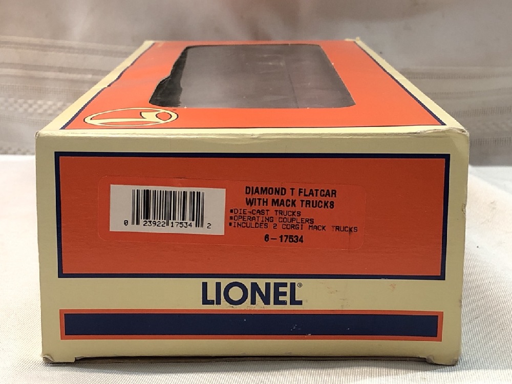 Lionel 6-17534 O-Gauge Diamond T Flatcar W/ Mack trucks # 9823 in original Box