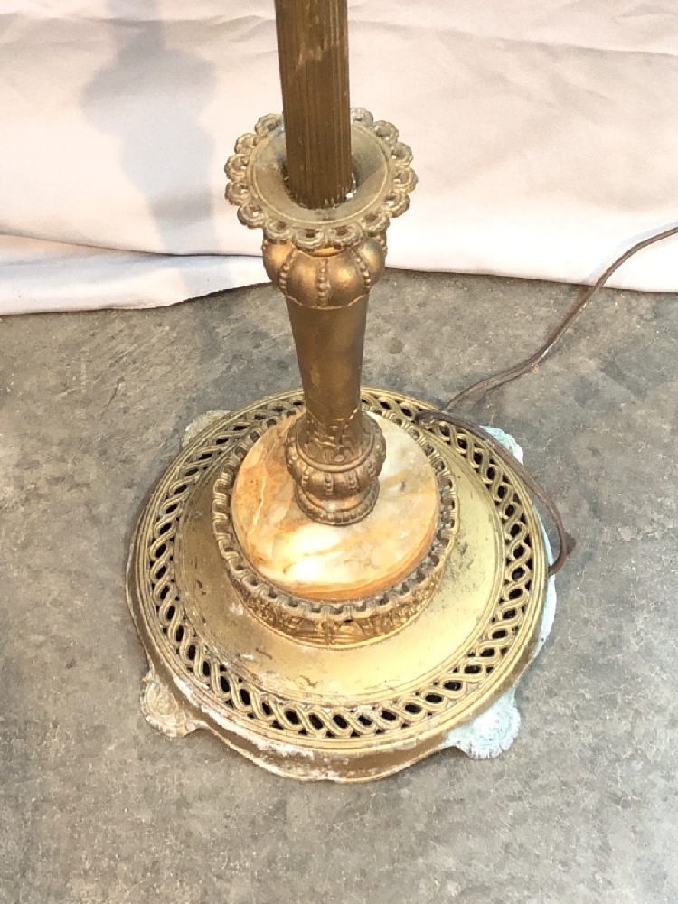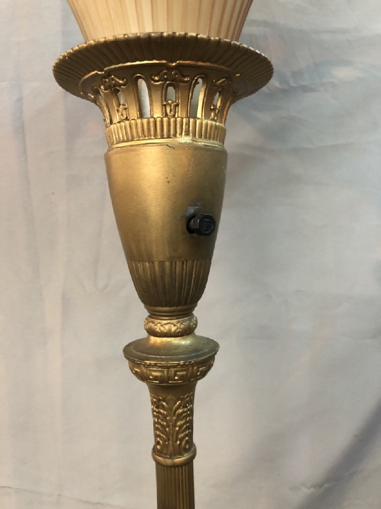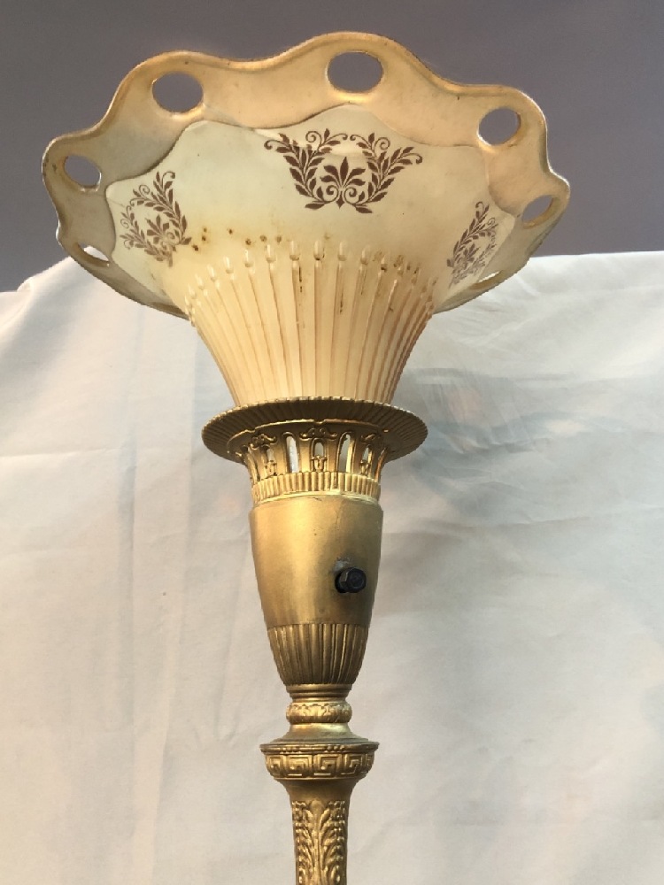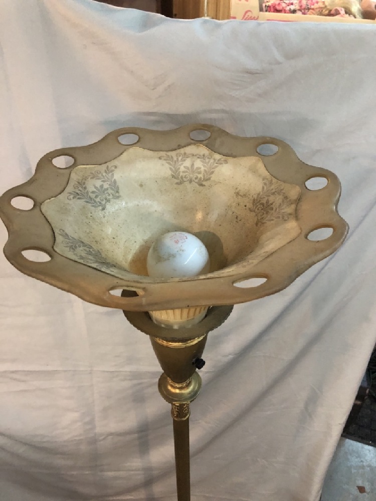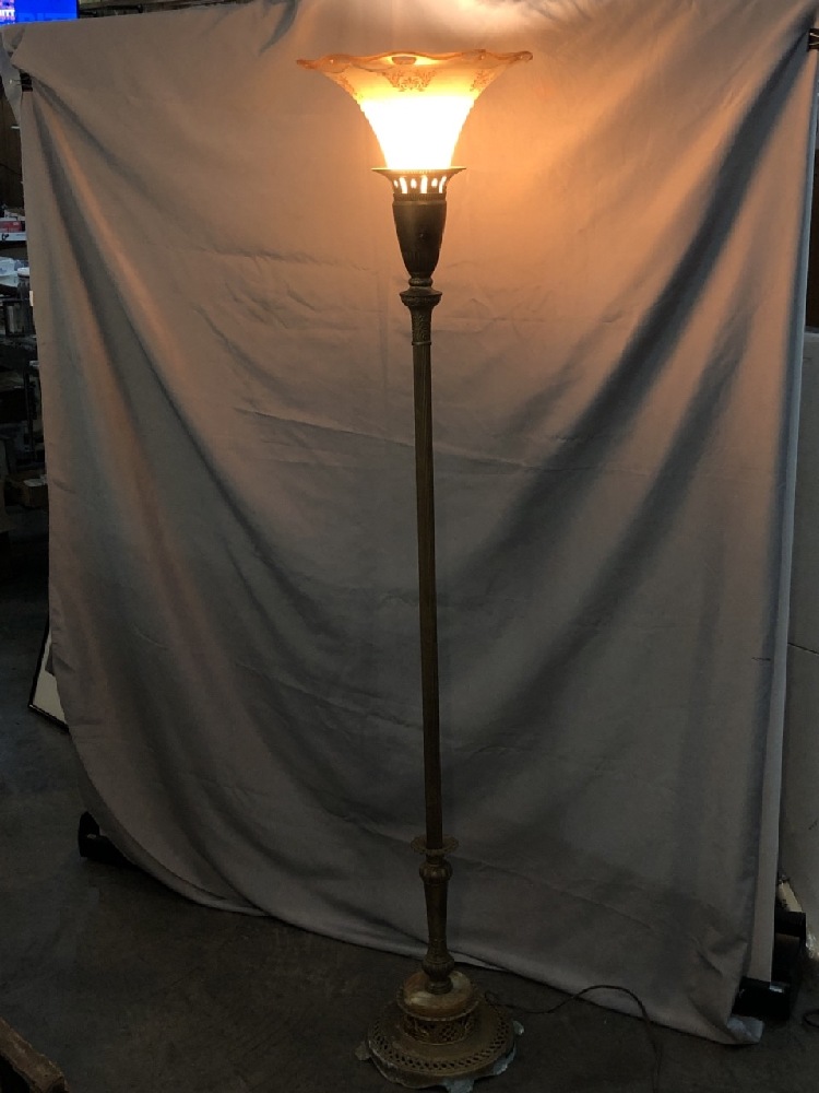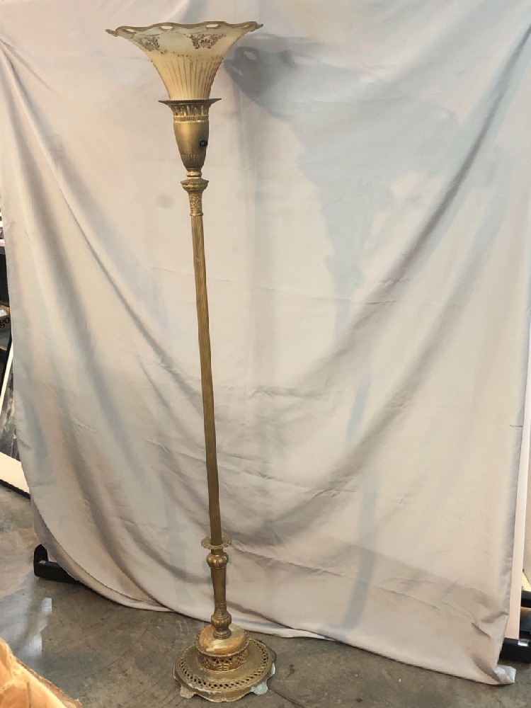 Vtg. Brass / Marble Torchiere Floor Lamp with Glass Shade - See photos for Condition- 67 1/2” Tall