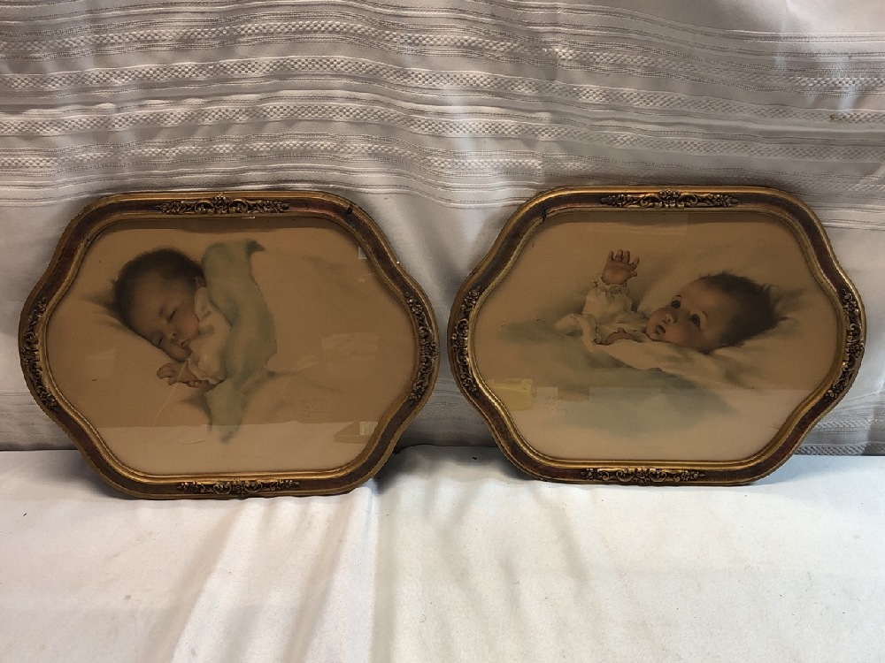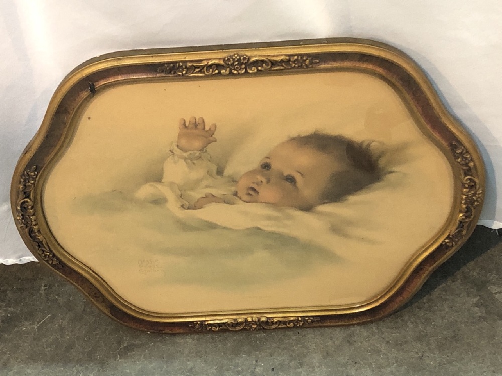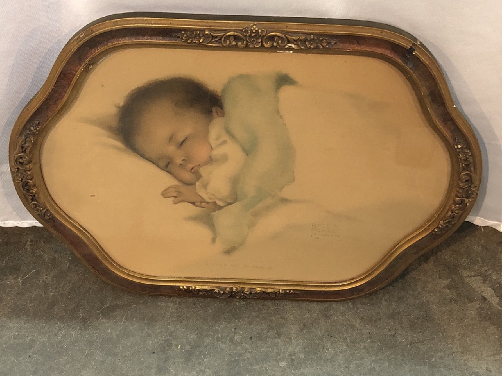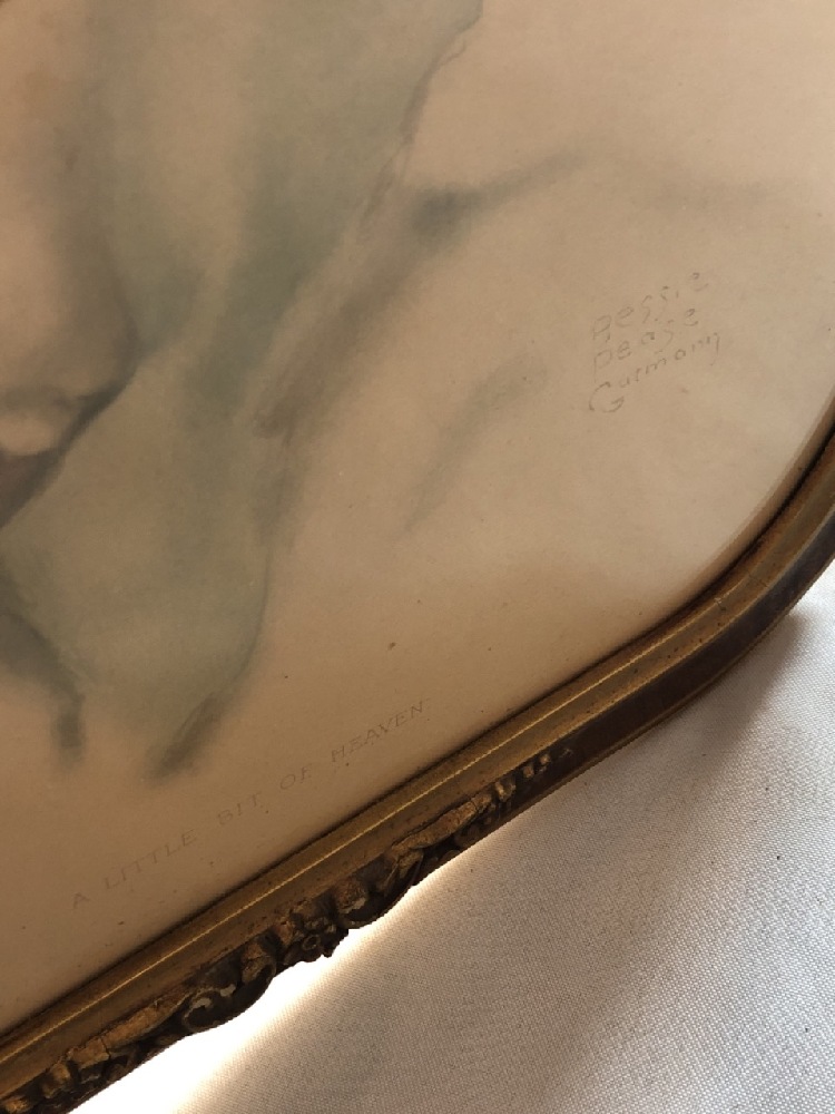 2 Vtg. Bessie Pease Gutmann Framed Prints including “ A Little Bit of Heaven” and “Awakening” ~ Decorative Frame 17 1/2” Long x 13 1/2” Tall