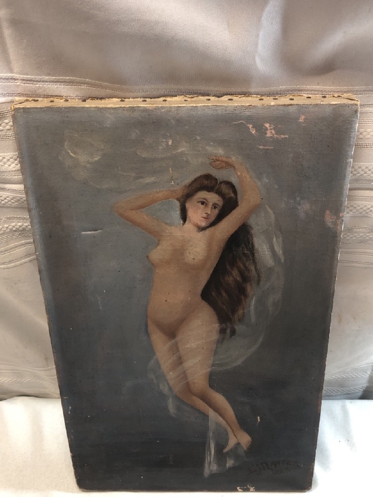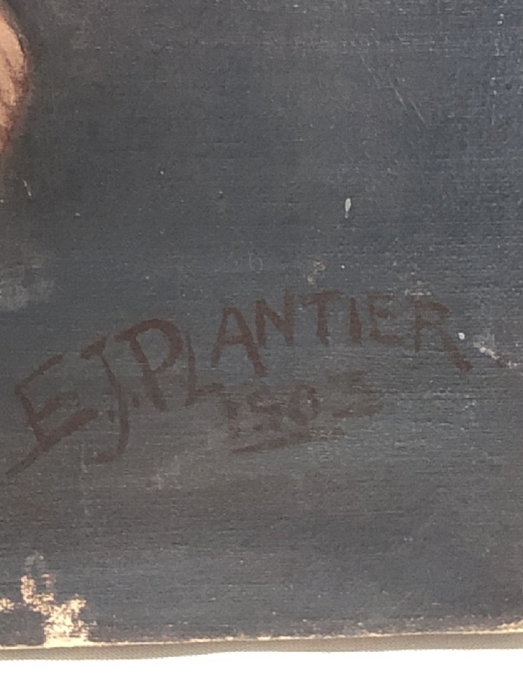E. J Plantier Signed Oil Painting on Canvas - 1903~ 20 1/4” x 12”
