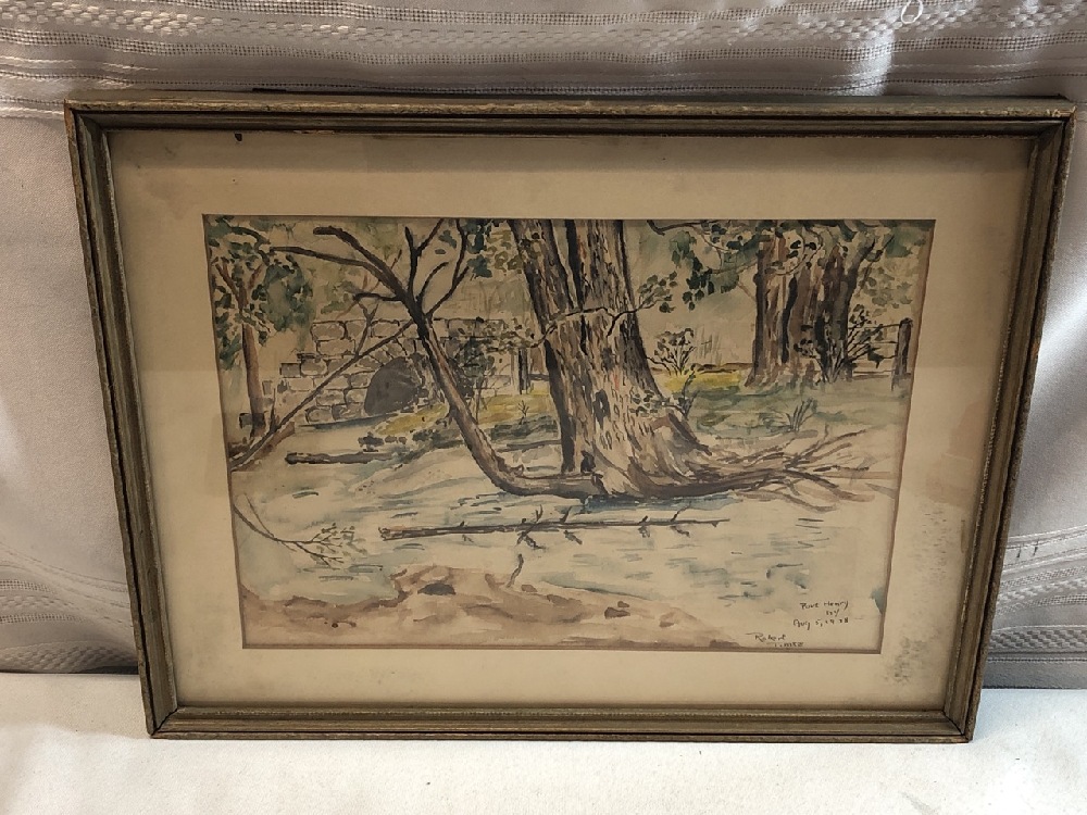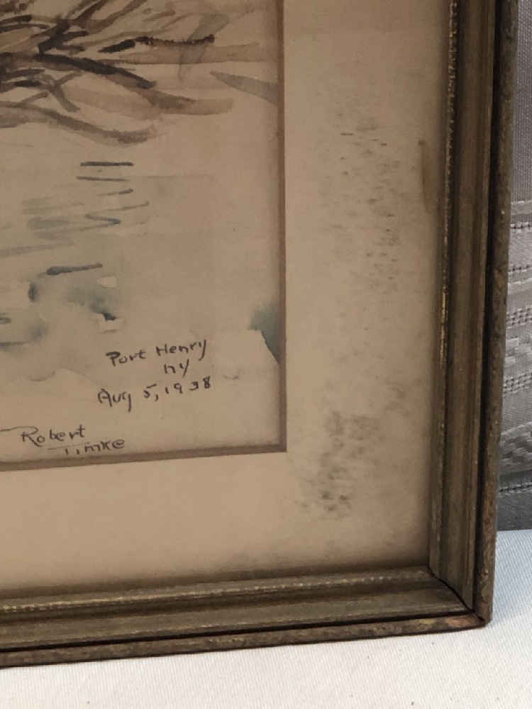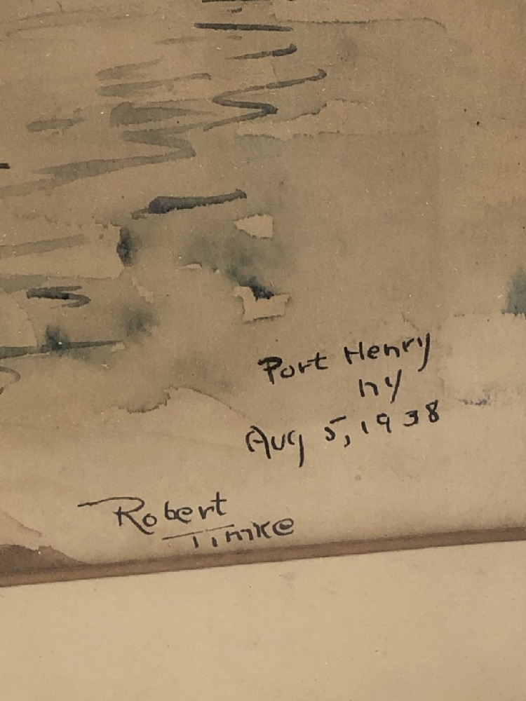 Robert Timke Signed Watercolor - Framed - Port Henry NY 1938 ~ 15 3/4” x 12 1/2”