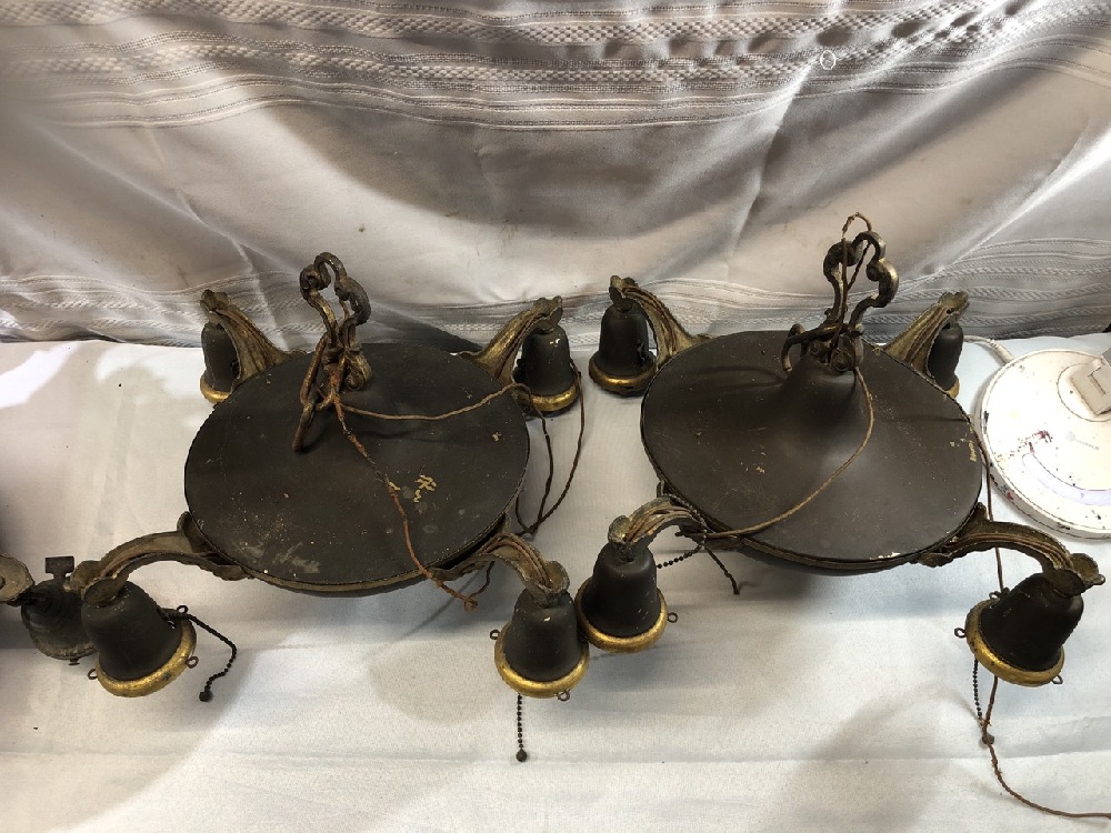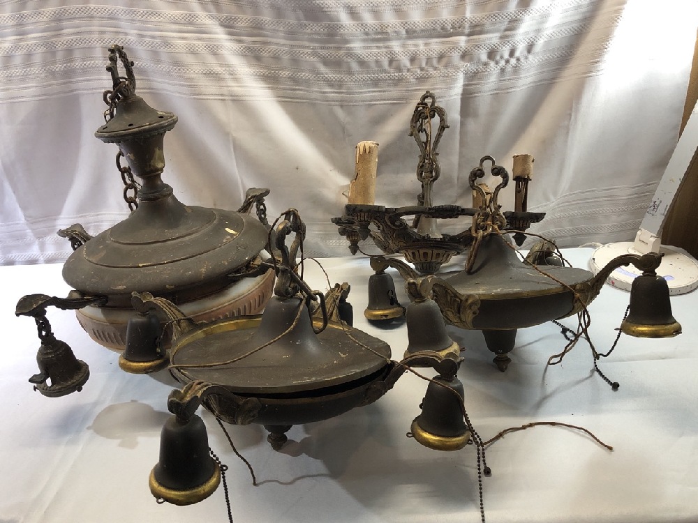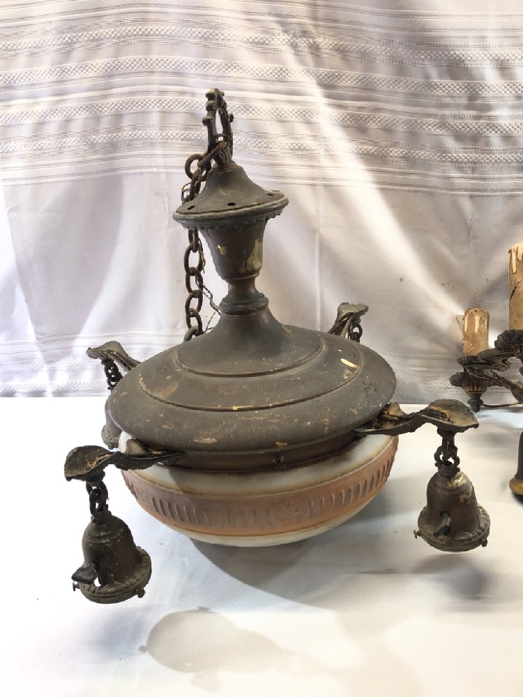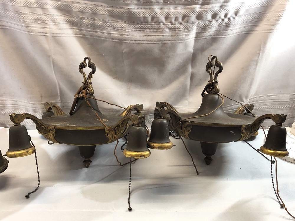 4 Mid Century Light Hanging/ Chandeliers ~ Brass/ Bronze