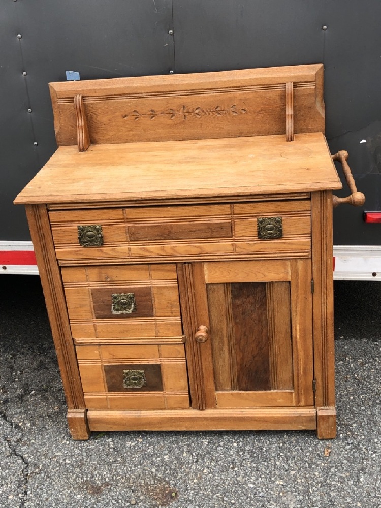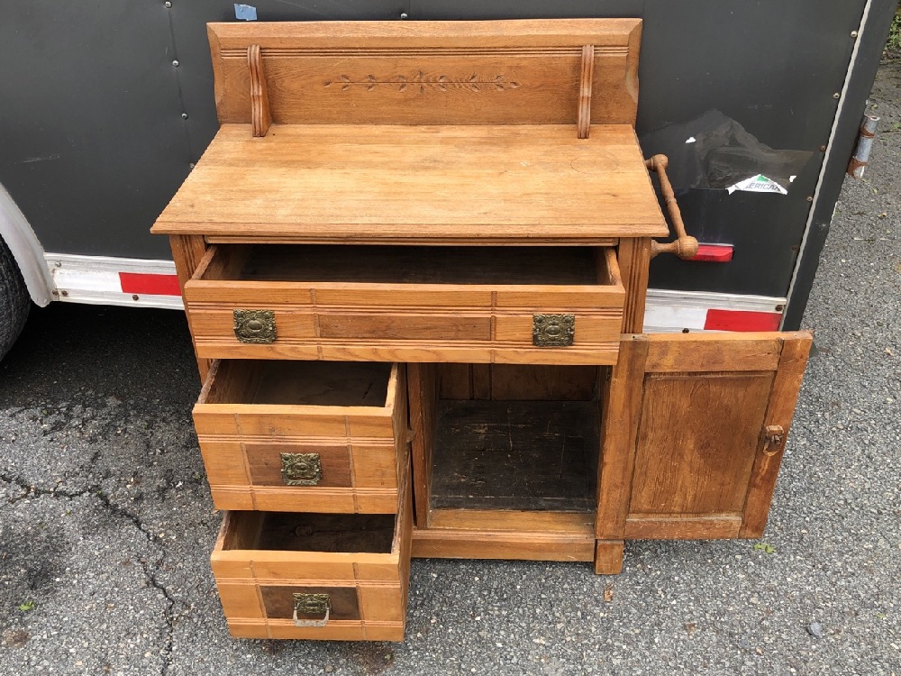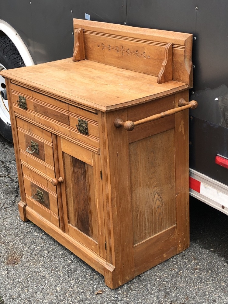 Antique Dry Sink - 32 1/2” wide ( with towel bar) x 16 1/2” Deep x 35” Tall to top of back ~ Brass Handles