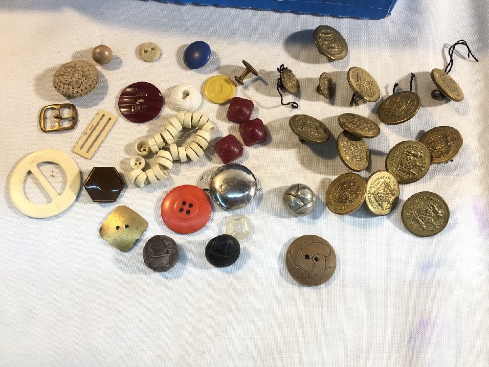 Vtg. Buttons Including MOP , NYC Police Uniform Button, Metal, Wooden, Cloth, Bakelite and More