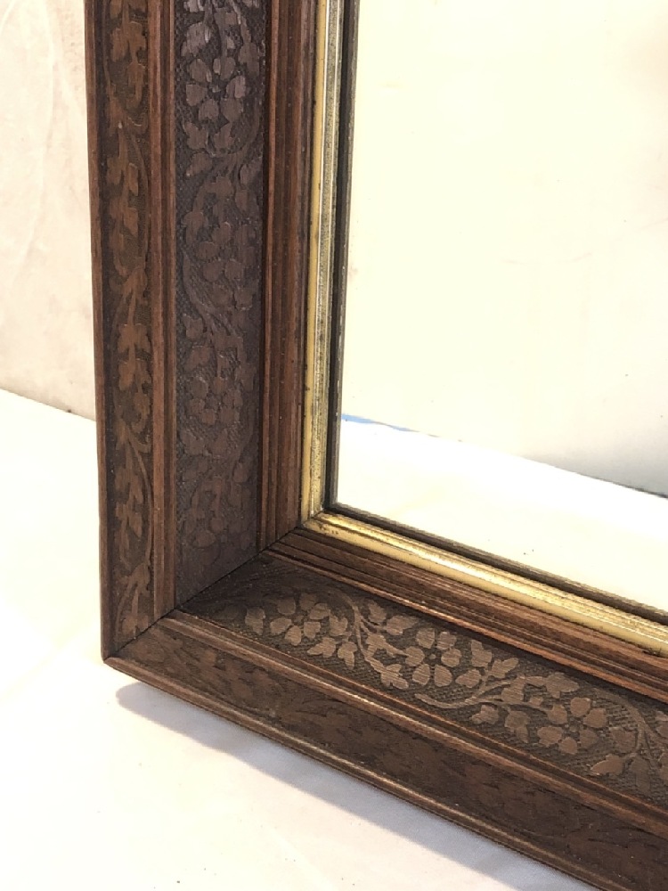 Antique Oak /Brass Beveled Mirror with Flowers and Leaves - 25 1/4” Tall x 19” Wide