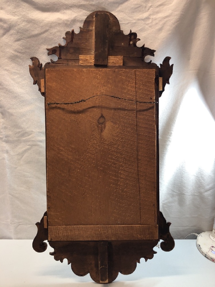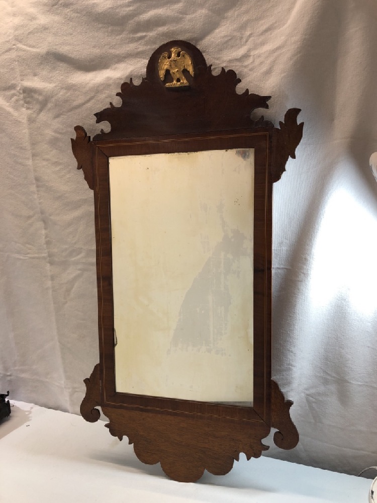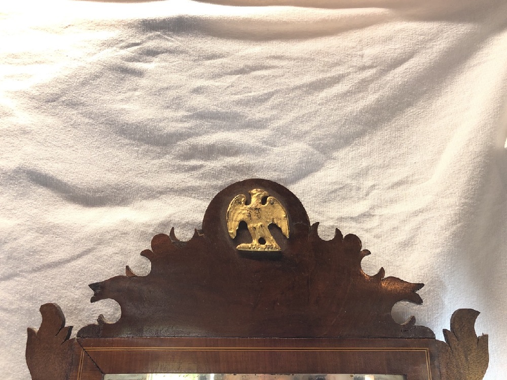 Antique Chippendale Mahogany Mirror~ 18 3/4” at the Widest x 35” Tall - Gold Guilted Eagle