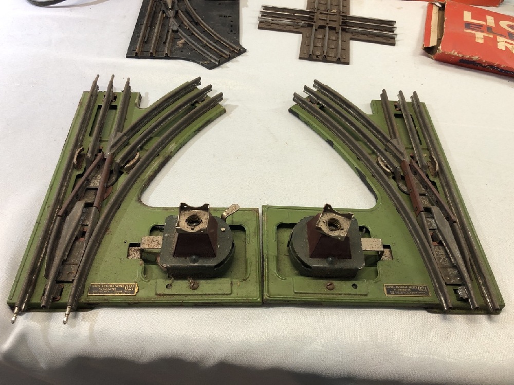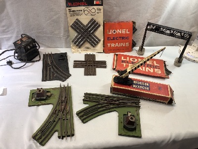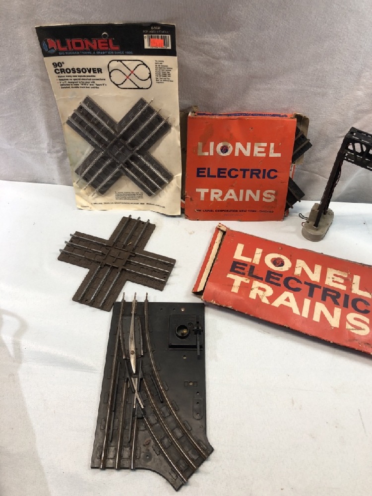 Vtg. Lionel Train Tracks, Transformer and Accessories ~ Railroad Switches, 90 Degree Crossovers, Multi Control Transformer, Crossing Gate no. 252 and Steel Bridge no. 450