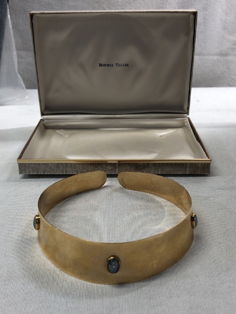 Vtg. 14K Signed GB / Australian Fire Opal Collar Necklace