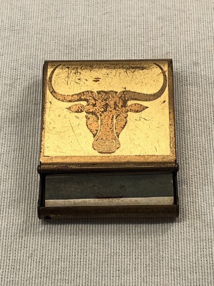 Vtg. Longhorn Brass Matchbook Case with 6 Year Calendar- Etched Product Corp.