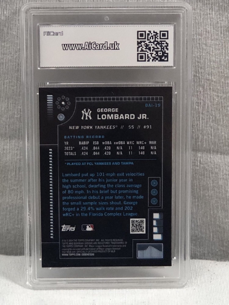 George Lombard Jr. 2024 Bowman Card ~ Gem Mt 10~ Cert. # 3214581