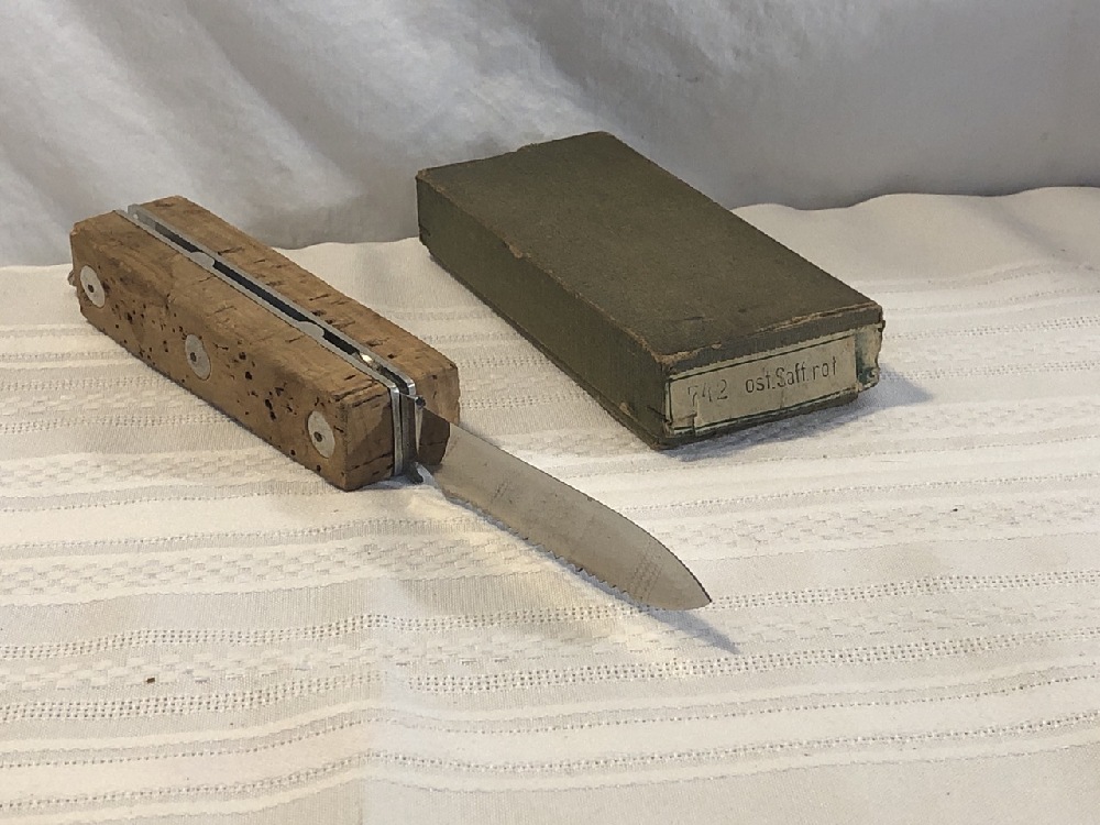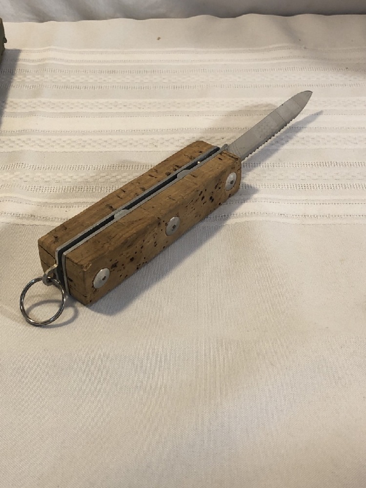 Colt CEM Maniago Italy Floating Cork Handle Knife with Box - 5 1/4” Handle, 4” Serrated Blade ~ Unused Condition
