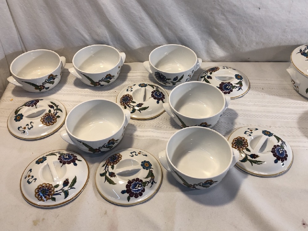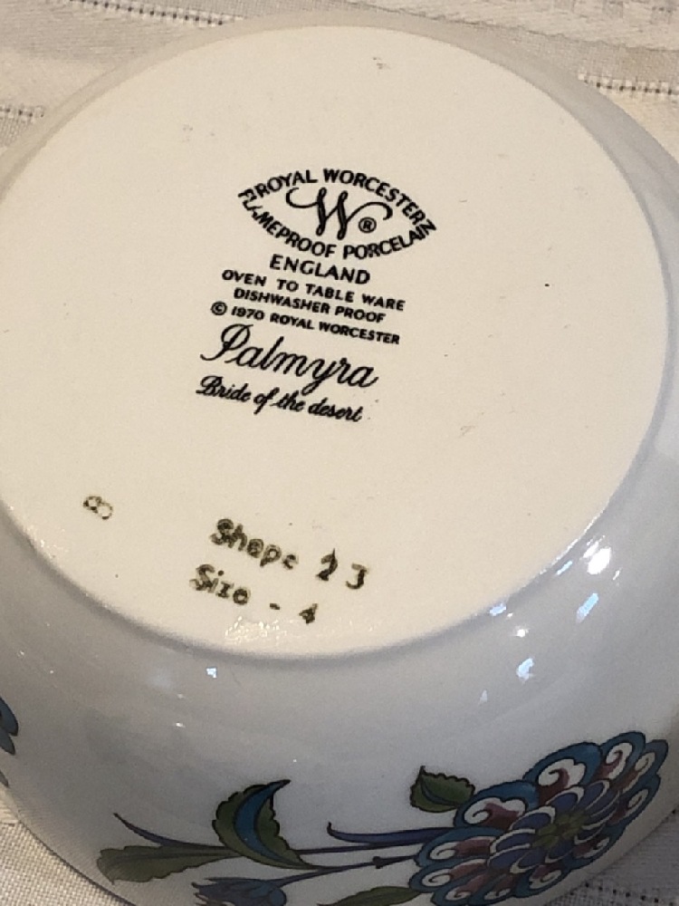 Royal Worcester England Palmyra “Bride of Desert” Serving Dishes ~ 6 Covered Casserole 4 1/2” Round x 2” Tall - 1 Covered Casserole 5 3/4” x 2 1/2” Tall - 5 Quiche Dishes 4” Round x 1 1/2” Deep - 1 Pie Plate 10 1/4” Round x 1 1/2” Deep