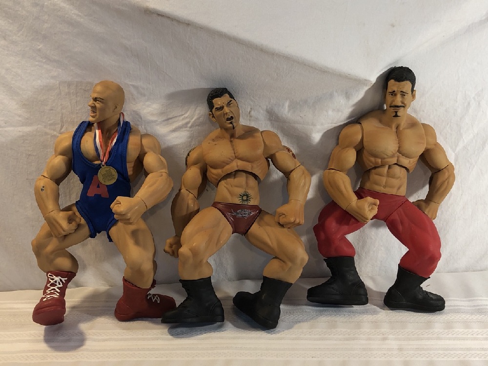 2005 Jakks Pacific WWE Ring Giants posable Action Figures - Kurt Angle, Batista and Eddie Guerrero ~ 13 1/2” Tall
