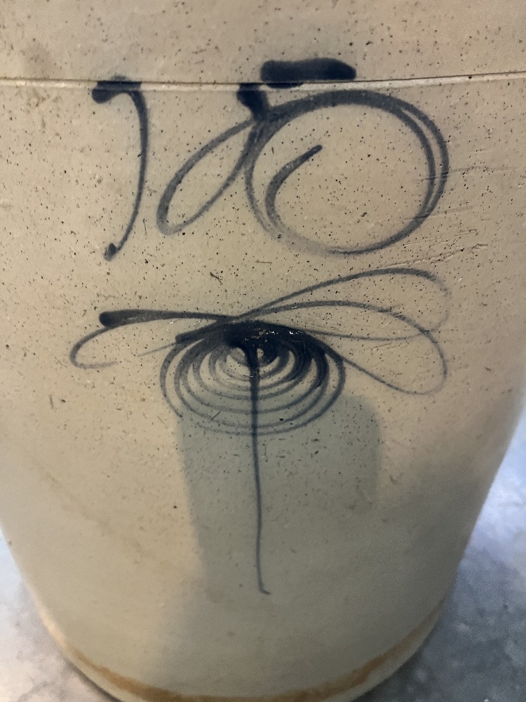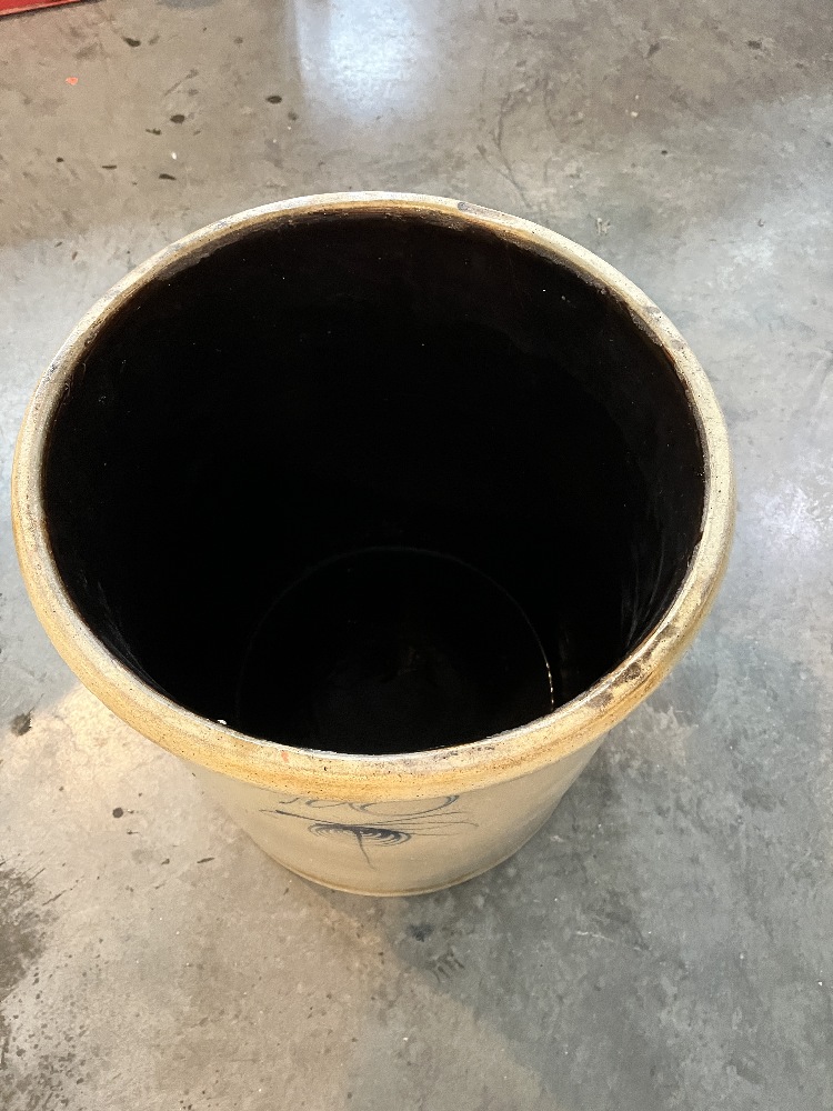 Antique Blue Decorated Stoneware Crock - 20" Tall x 17" Round
