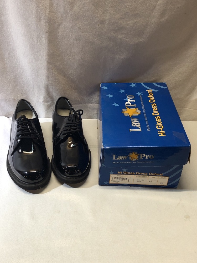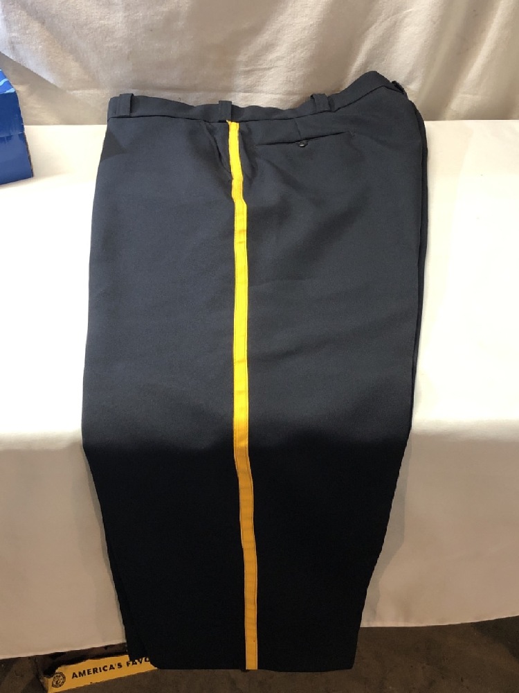 First Responder Uniform - Jacket 46R, Yellow Stripe Pants Sz. 44R, Tie with “Johnson Fire Co.” Clasp and Shoes Sz. 8 1/2 W
