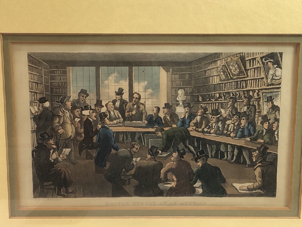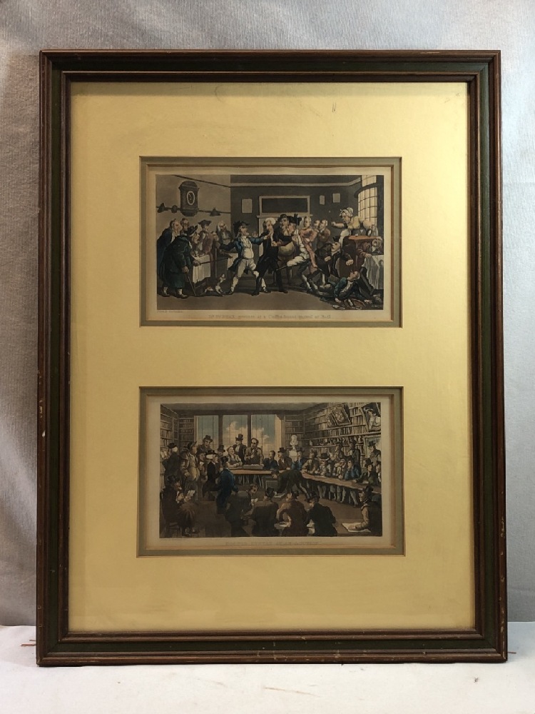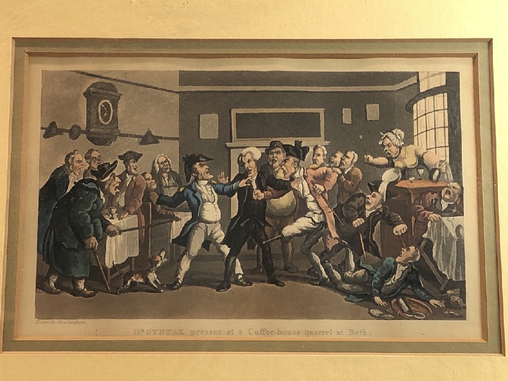 Framed Prints by Thomas Rowlandson ~ Dr. Syntax Present at a Coffee House Quarrel Bath and Doctor Syntax at an Auction - Frame 15 1/2” x 20 1/2”