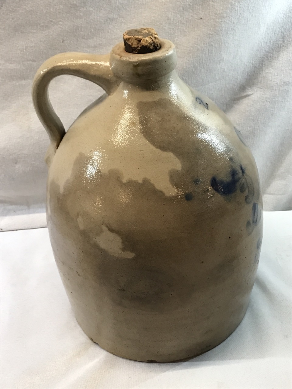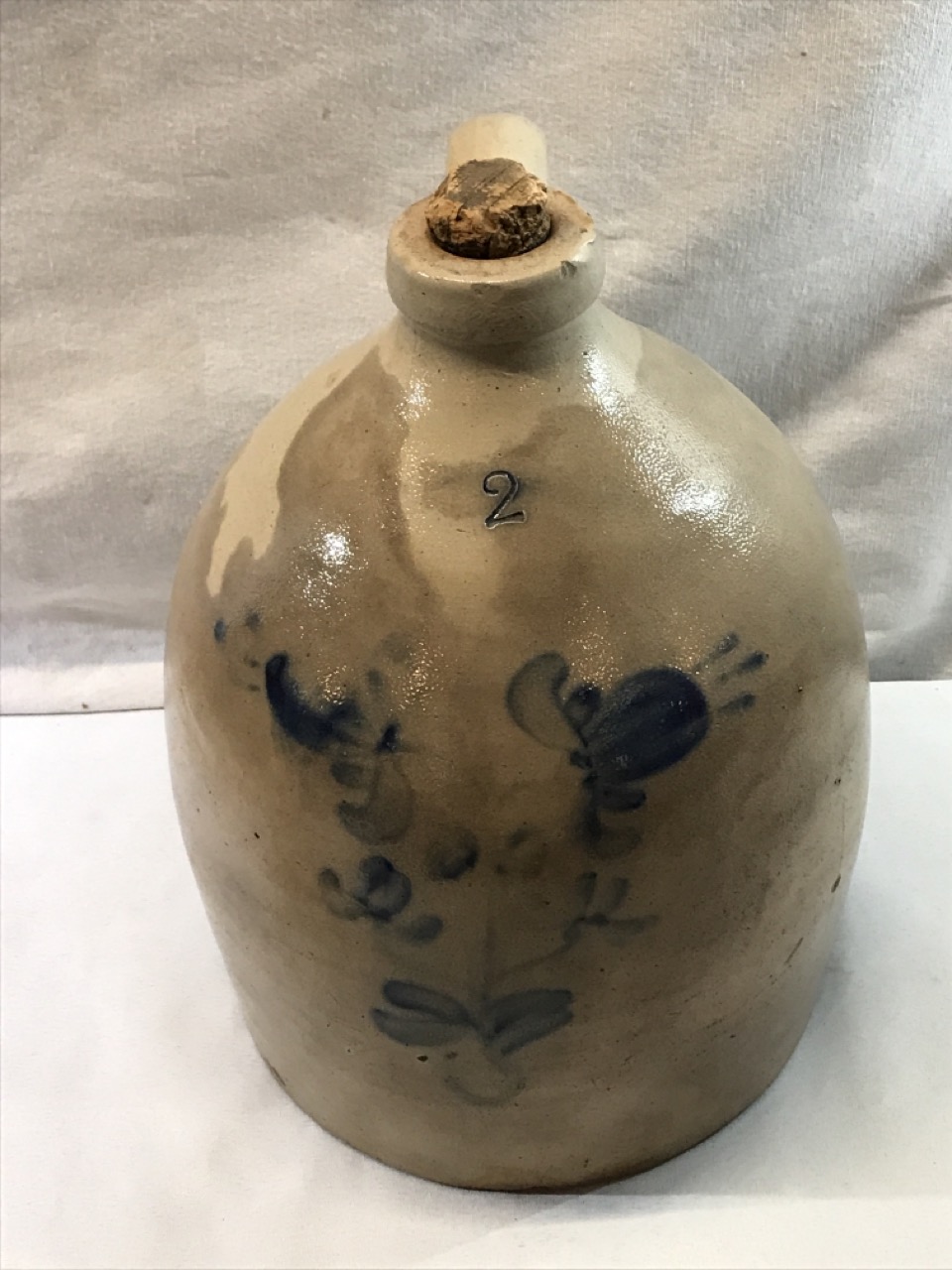 Antique 2 Gallon Stoneware Jug Blue Floral Decorative - 14” Tall
