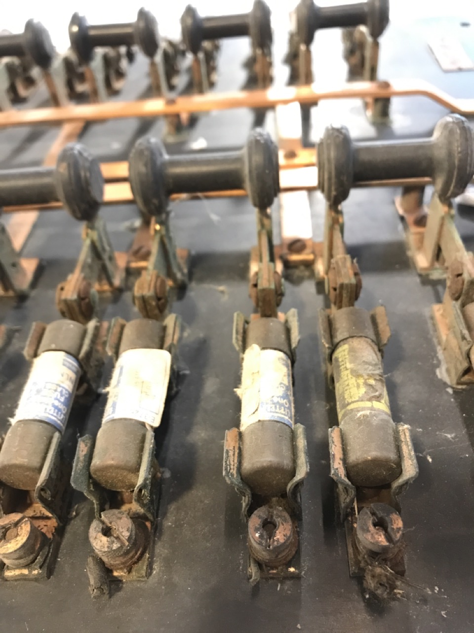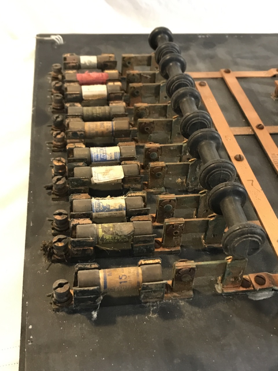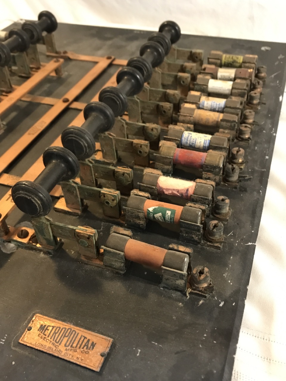 Metropolitan Electric MFG. Co. Copper Fuse Panel on Slate- Long Island City NY - Heavy! Slate is 17 1/4” Wide x 21” Tall x 1” Deep