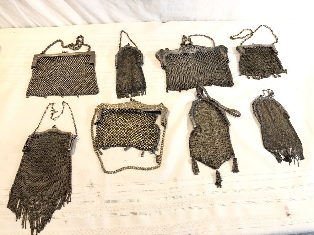 8 Antique Mesh Purses including German Silver, Whiting & Davis Co., ~ See Photos for Conditions