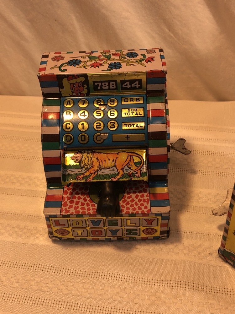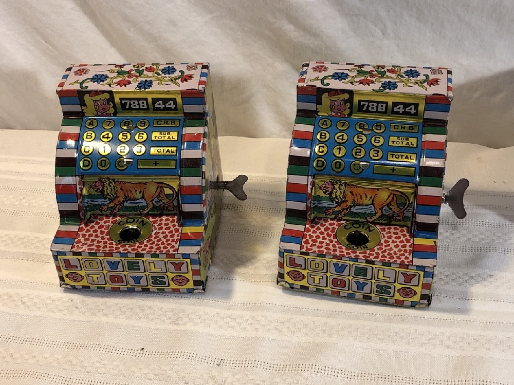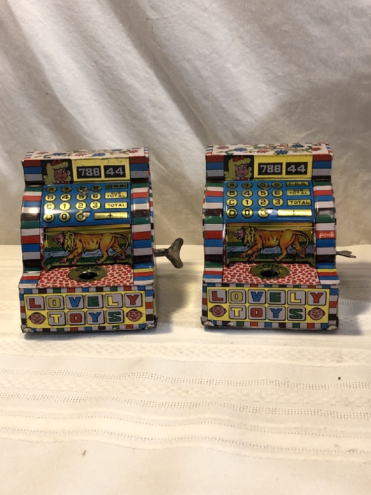 4 Vtg. Welby Wind Up Tin Toy Computer Bank - New Old Stock - include Wind up keys