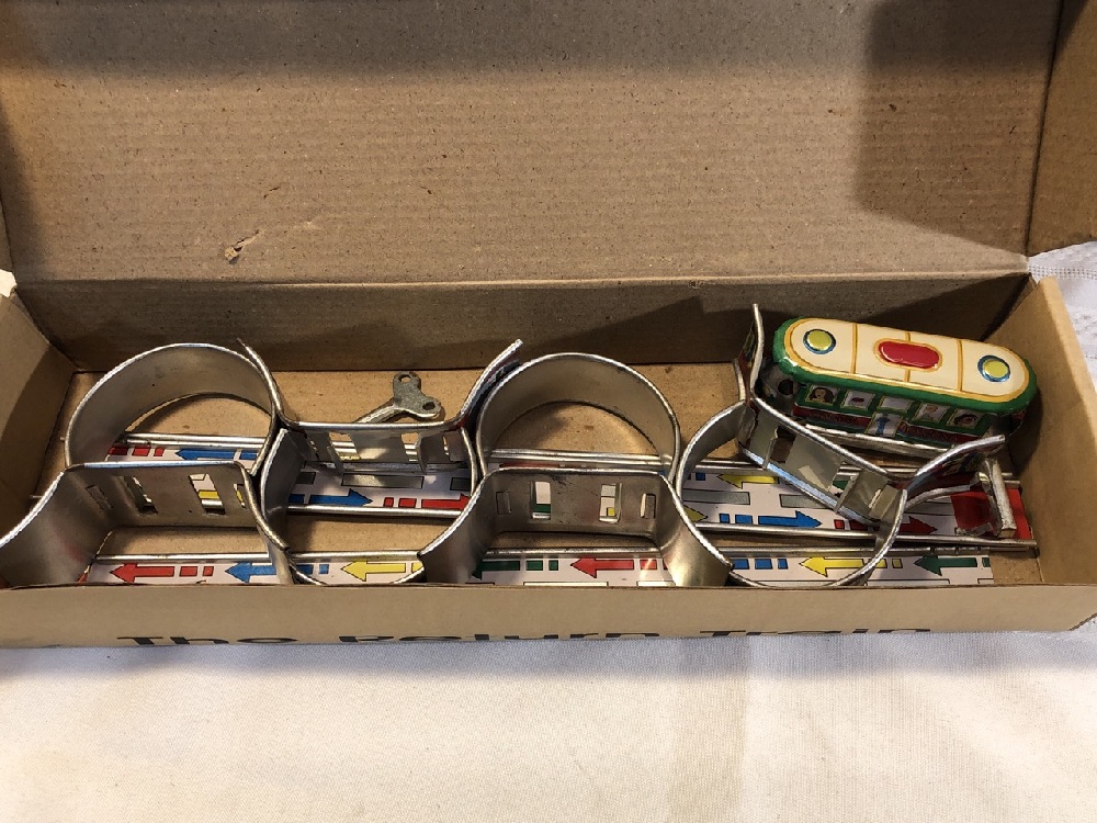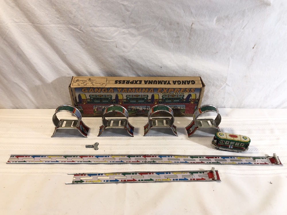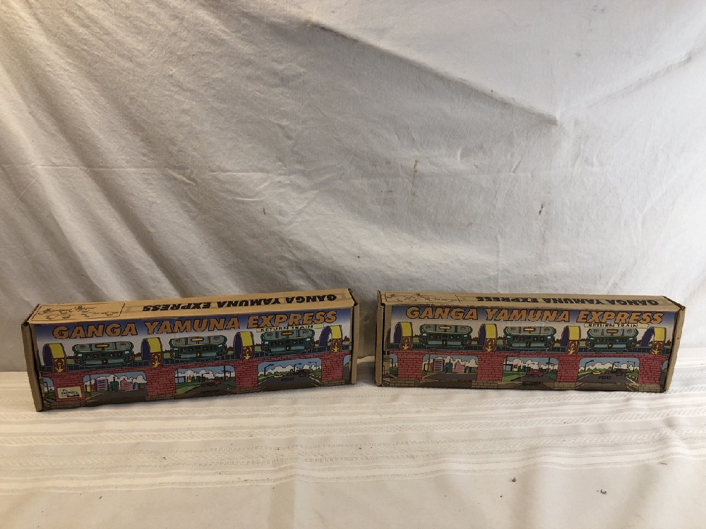 2 Vintage Ganga Yamuna Express Tin Toy Trains - # S042 ~ New Old Stock- includes Key