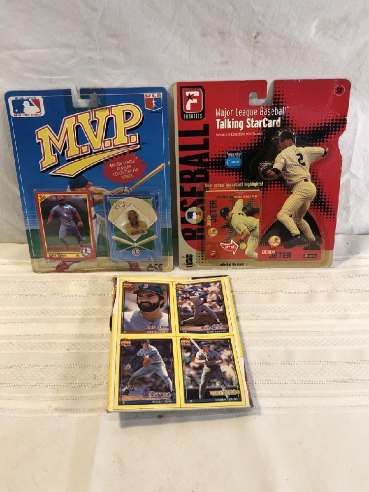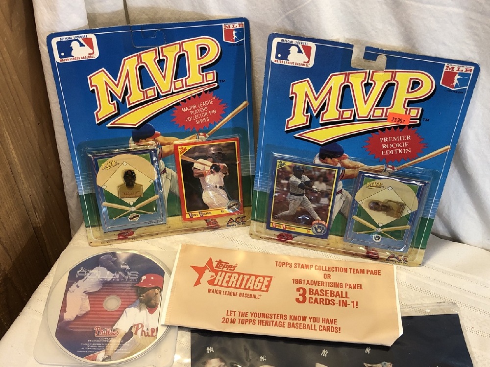 Vtg. Trading Cards, Photos and Collectables including MVP Collectors Series, Yankees/Phillies Photos, Fanatics Jeter Star card, California Raisins (Empty), Pat Burrell Chrome, Jimmy Rollins Cd-Rom and More