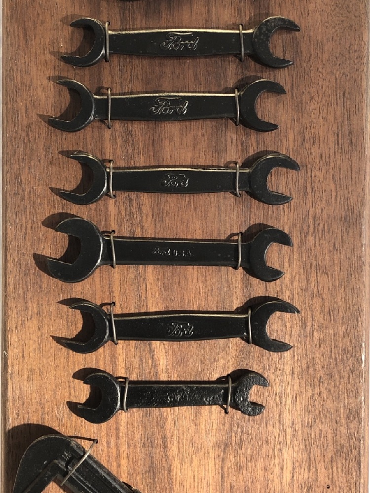 Ford Wrenches and 1937V8 85 Emblem on Display - 24 1/2” tall x 9” wide