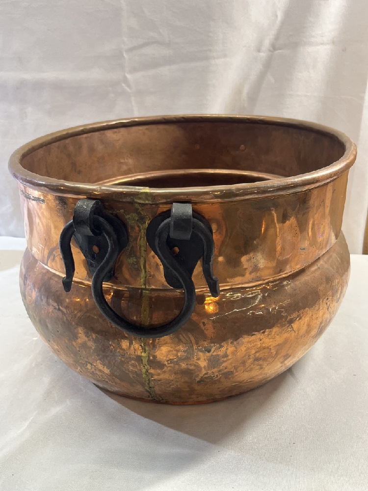 Hammered Copper Pot with Hand Forged Handles ~ 18” x 14” x 9” Tall