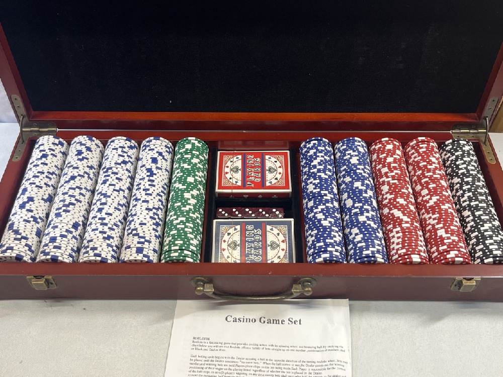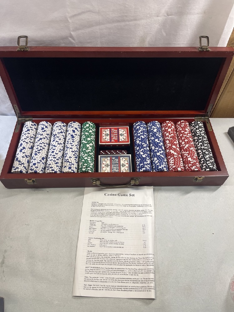Casino Game Set in Box - Poker Chips, Playing Cards, Dice ~ NIB