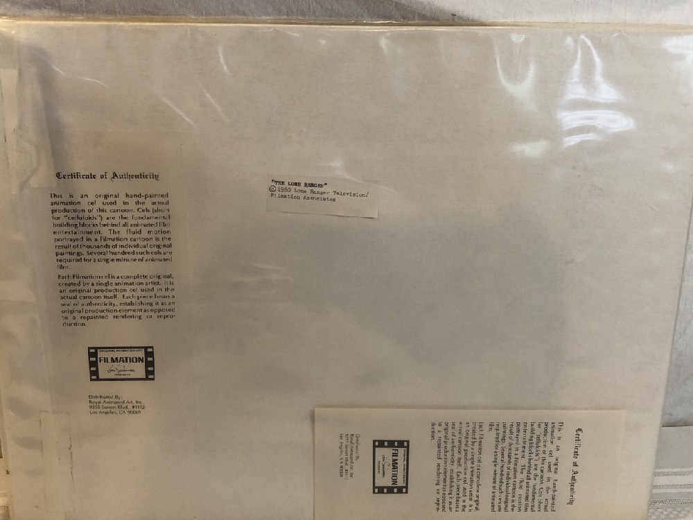 Lone Ranger and Tonto production Cels - Hand Painted Background ~ Coa By Filmation ~ 18” x 14”
